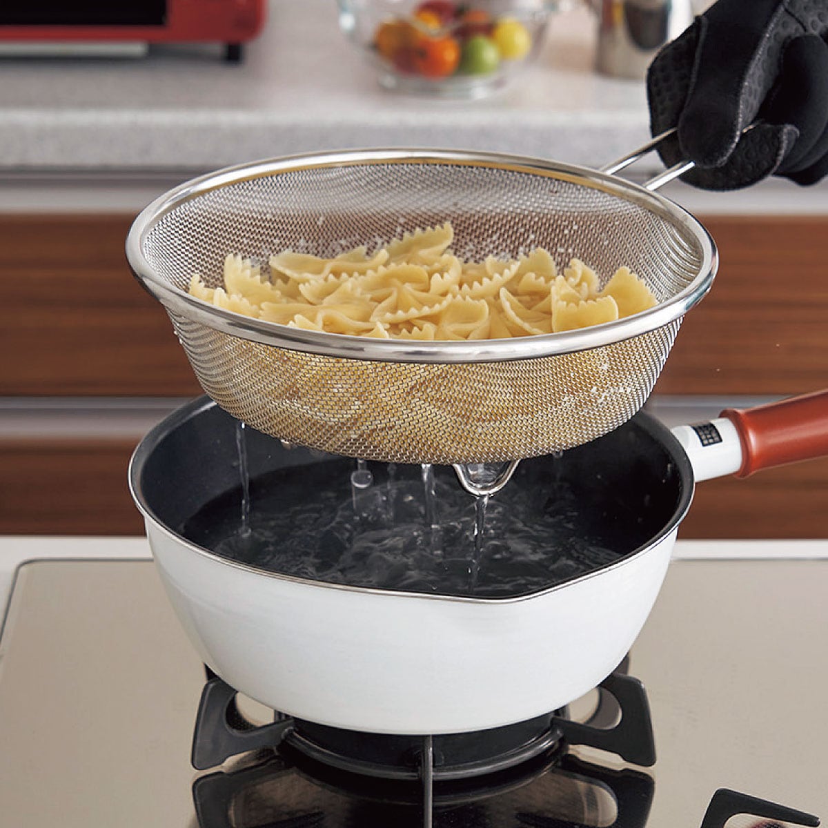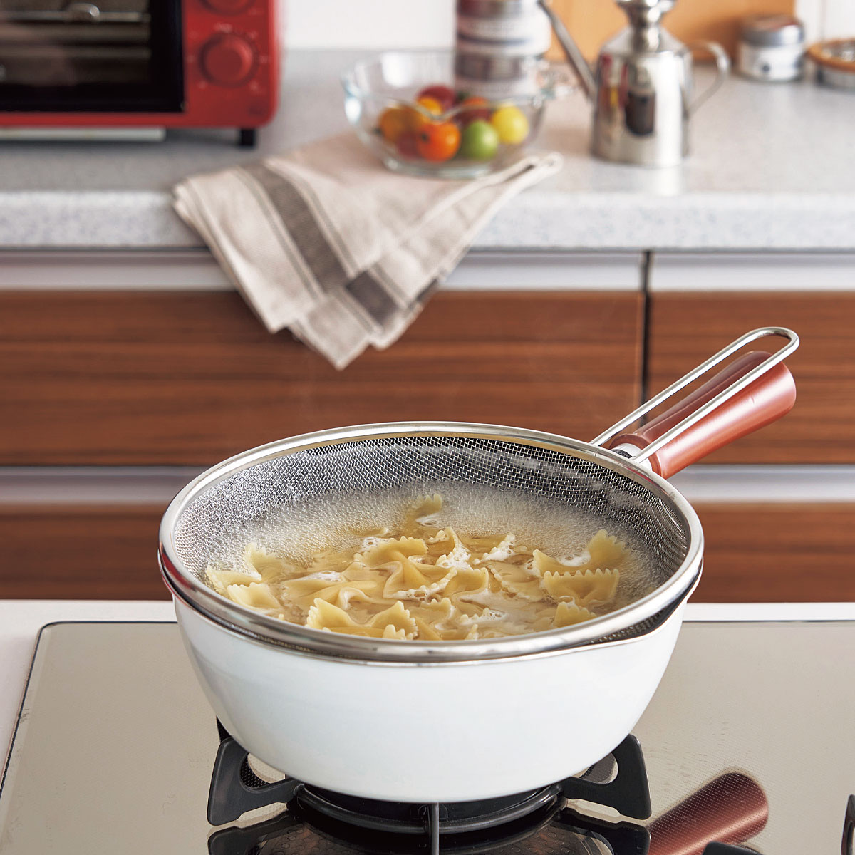 7役【1.茹でる】フライパンにピッタリ合うステンレス製のザル付き