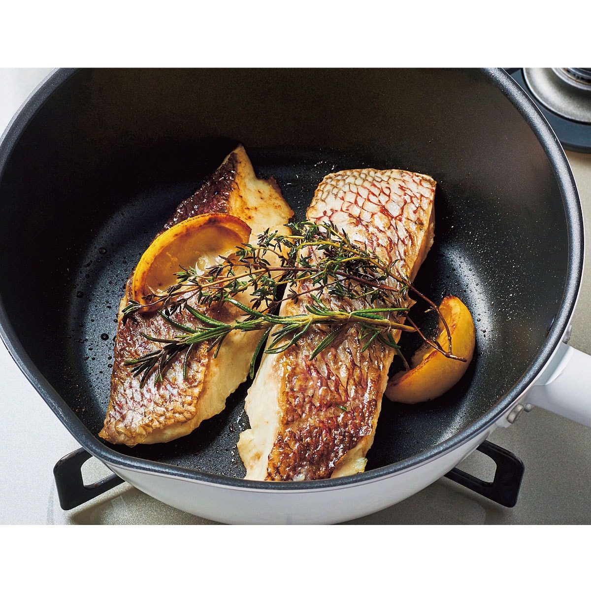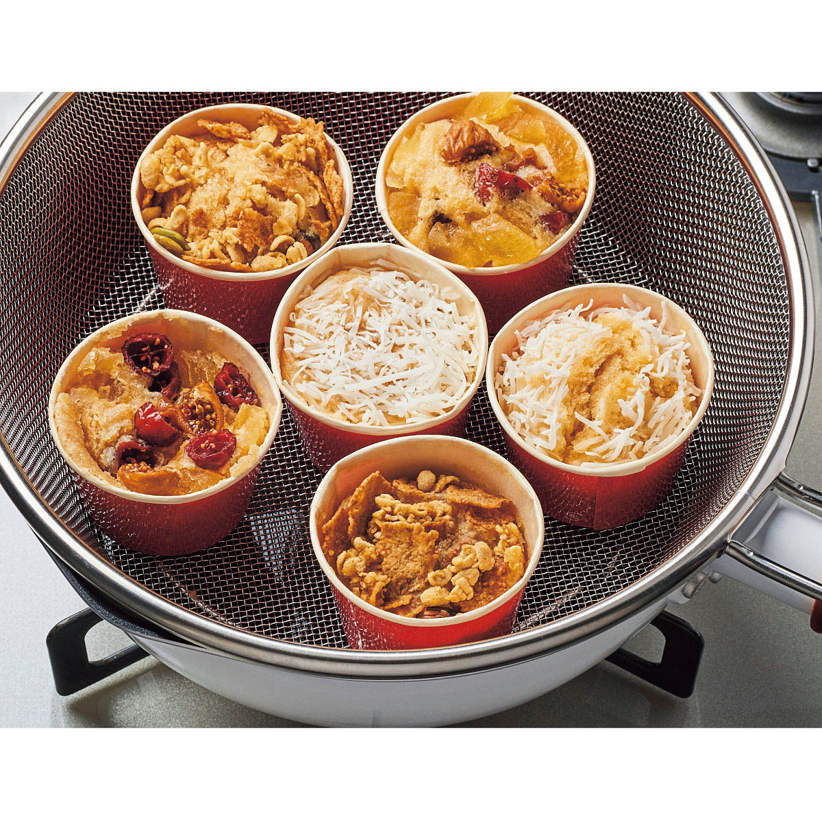炒める・煮る・焼く・蒸す・揚げる・茹でる・湯切りがこれ1台!ザル付き1台7役マルチパン。