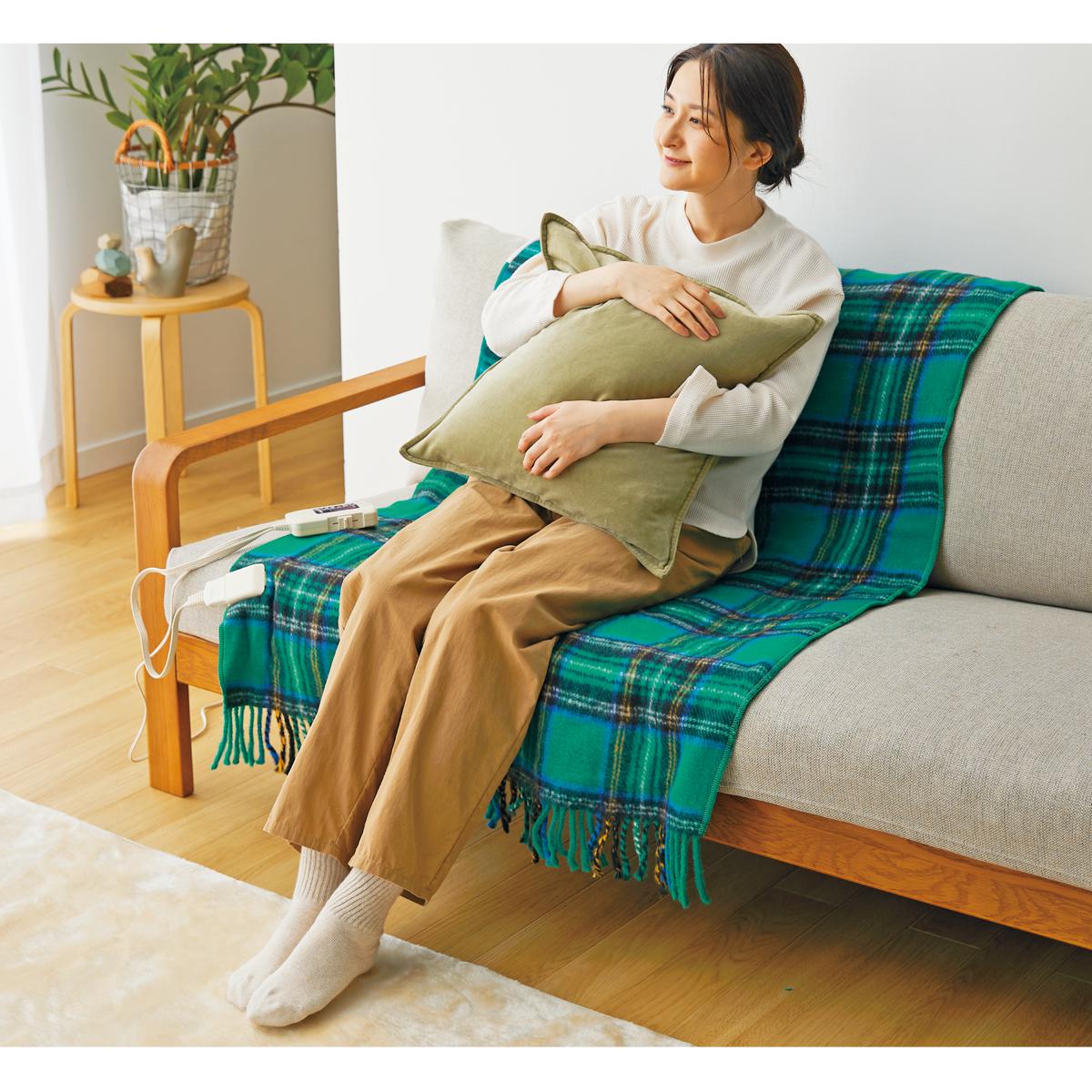 やわらかな風合い、ストール感覚で使える電気毛布。お部屋の寒さ対策、エアコンが苦手な方にもおすすめ!お洗濯OKだから、いつも気持ちよく使えます。手元で3段階に温度調節できるコントローラー付き。ソファや椅子にひいても、ストールとしてもお使いいただけます。
