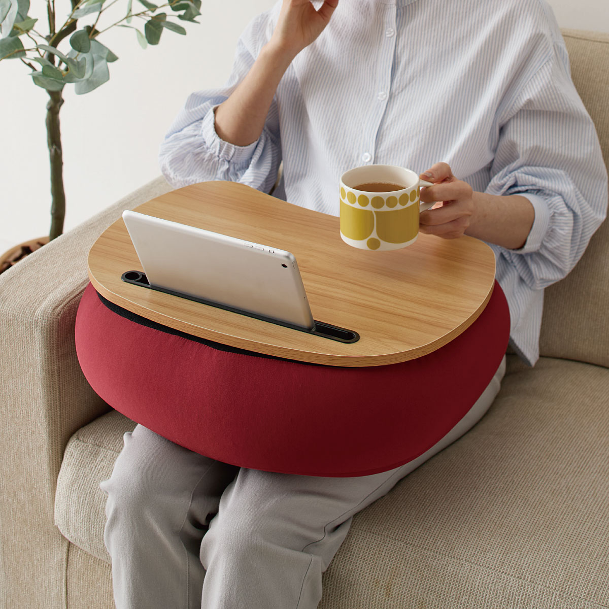 ボルドー膝の上が便利なテーブルに早変わり!クッションに取り外し可能な天板が付いたテーブルクッションです。