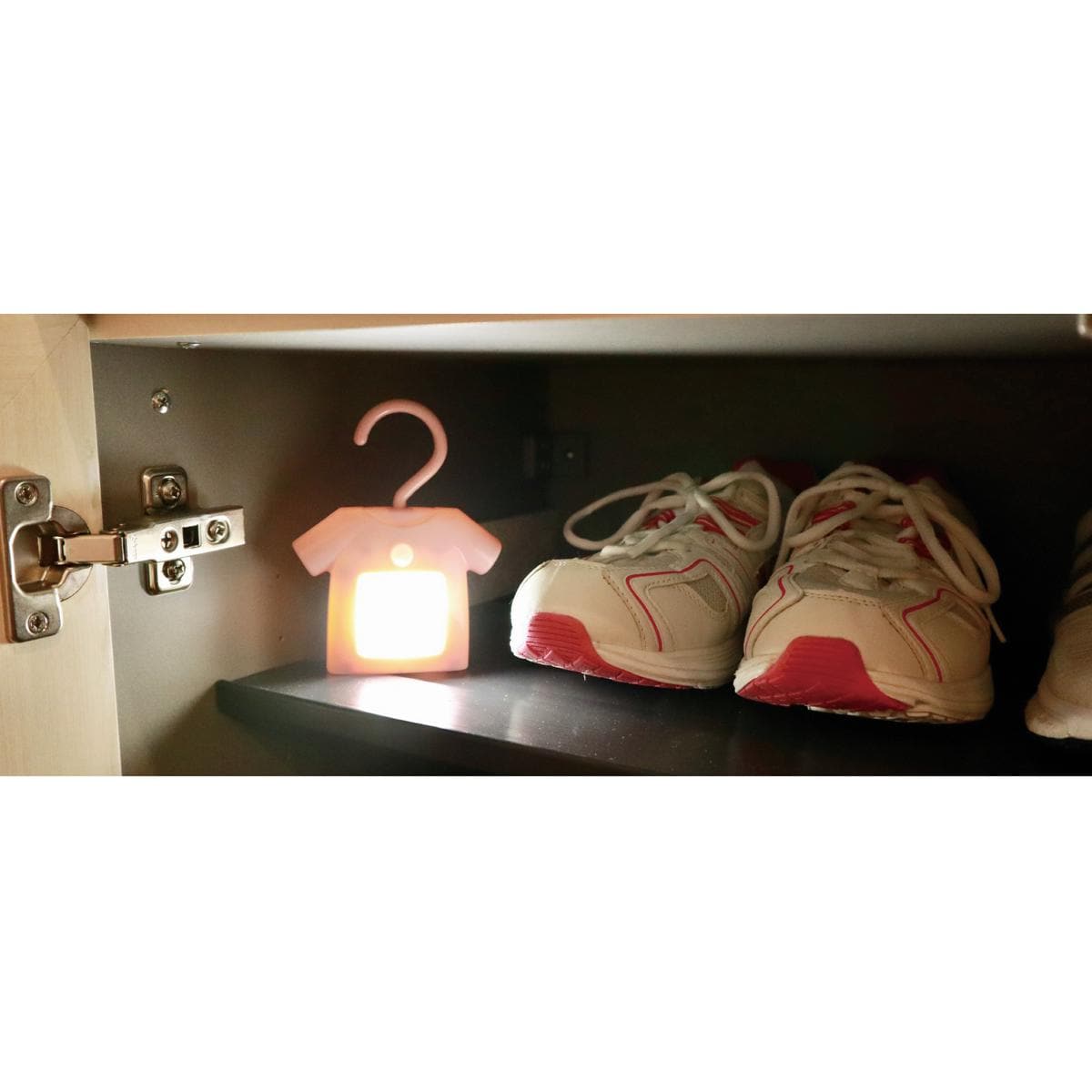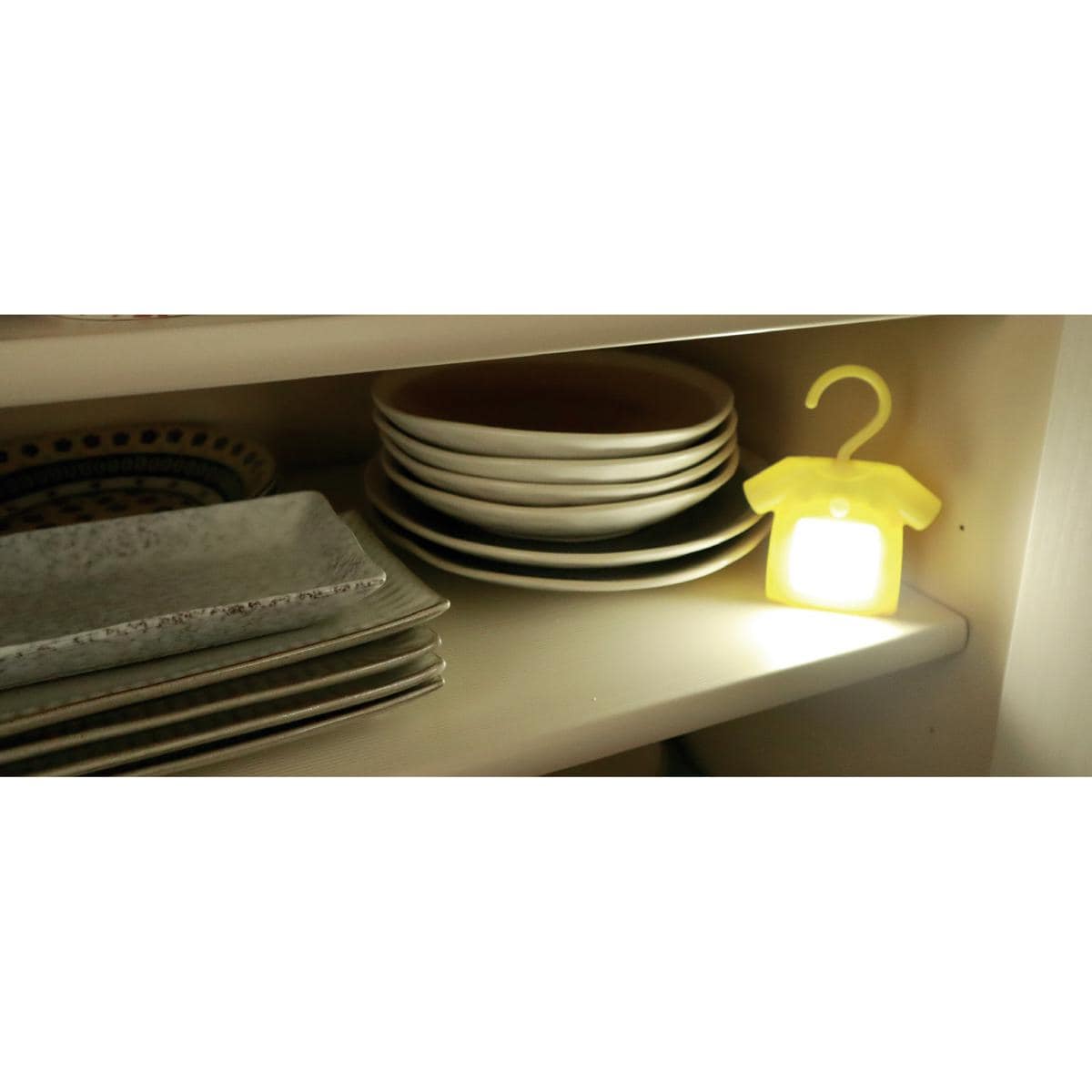 クローゼットのバーにTシャツを掛けているような感覚で、設置できるLEDライト。マグネット付きで収納棚などにも貼り付けて、使用できます。人感センサー付だからライトの消し忘れの心配もなし!●下駄箱の中にも●物置の中にも