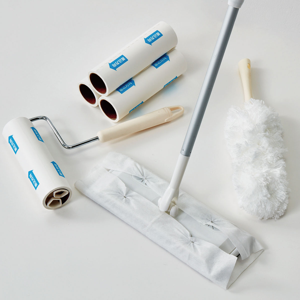 フローリング・ハンディーワイパーは立てて、カーペットクリーナーはスライドして入れるだけの簡単収納。