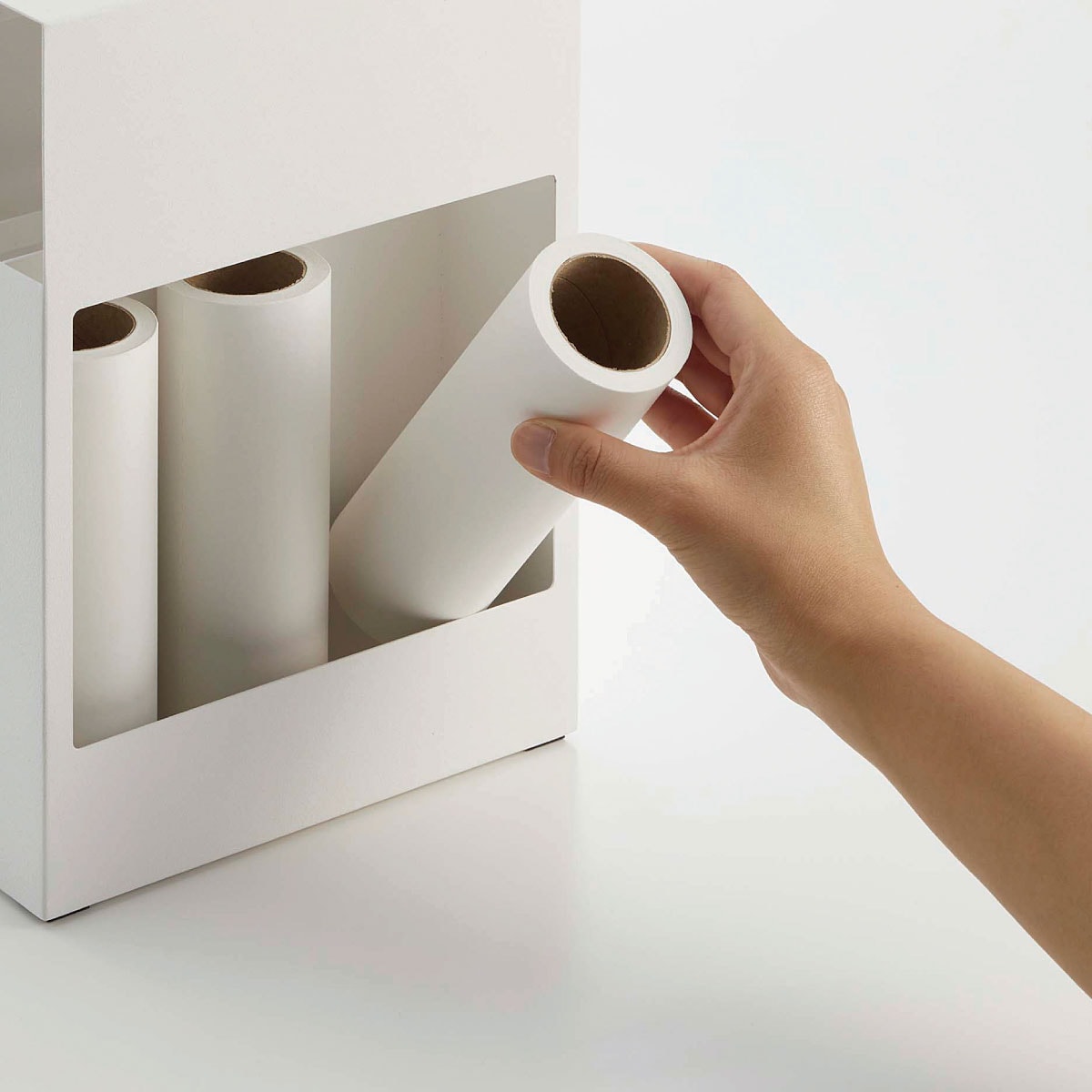 ■スチール(粉体塗装) ■サイズ(約cm)/20×12×高さ28 ■収納可能サイズ(約cm)/ [ハンディワイパー]7.5×5×高さ18まで [フローリングワイパー]12×5×高さ26まで [ハンディカーペットクリーナー]直径6.5×幅16まで[オープンポケット]19.5×6.5×18.5 ※本品にクリーナー本体や取り替えシート、スペアテープは付属しておりません。 ※本品は市販のクリーナー各ツール・取り替えシート・スペアテープを収納対象としていますが、サイズや形状によっては収納できないものもあります。●中国製
