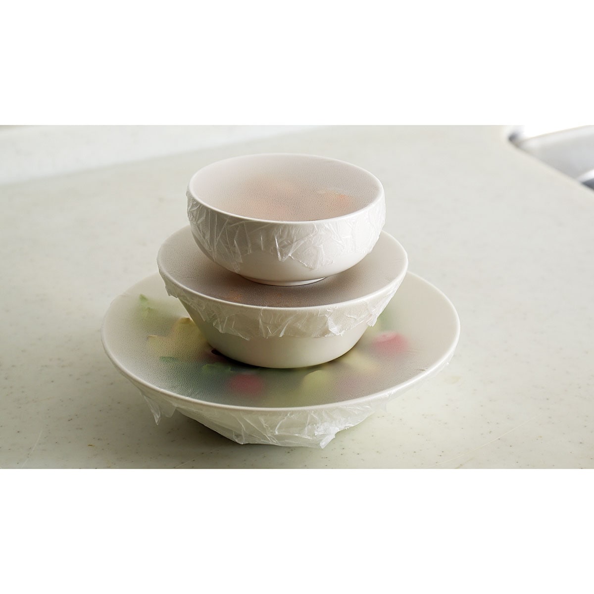 2枚重ねて押しつけるだけで密着できるラップ。粘着力が落ちるまで繰り返し使えます。