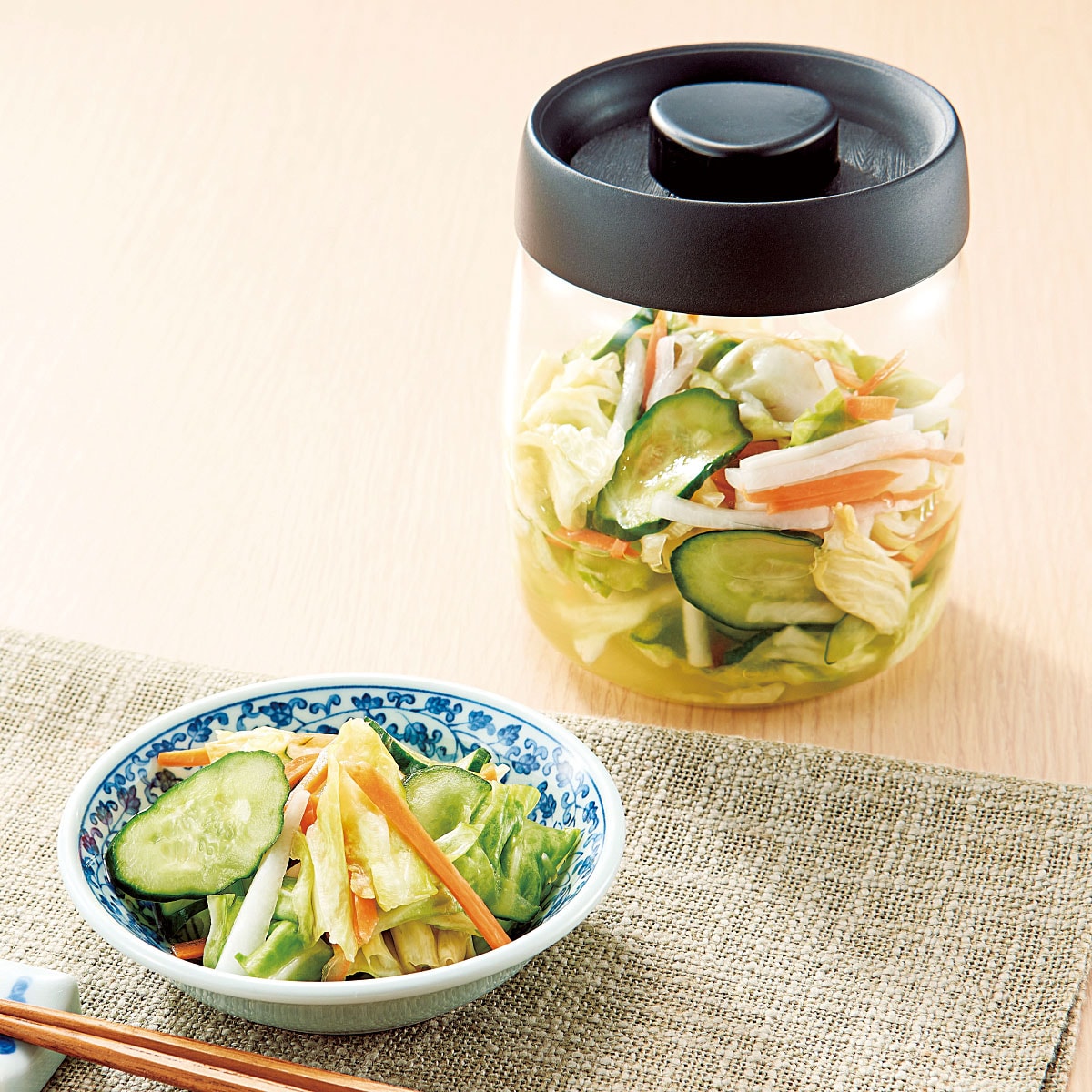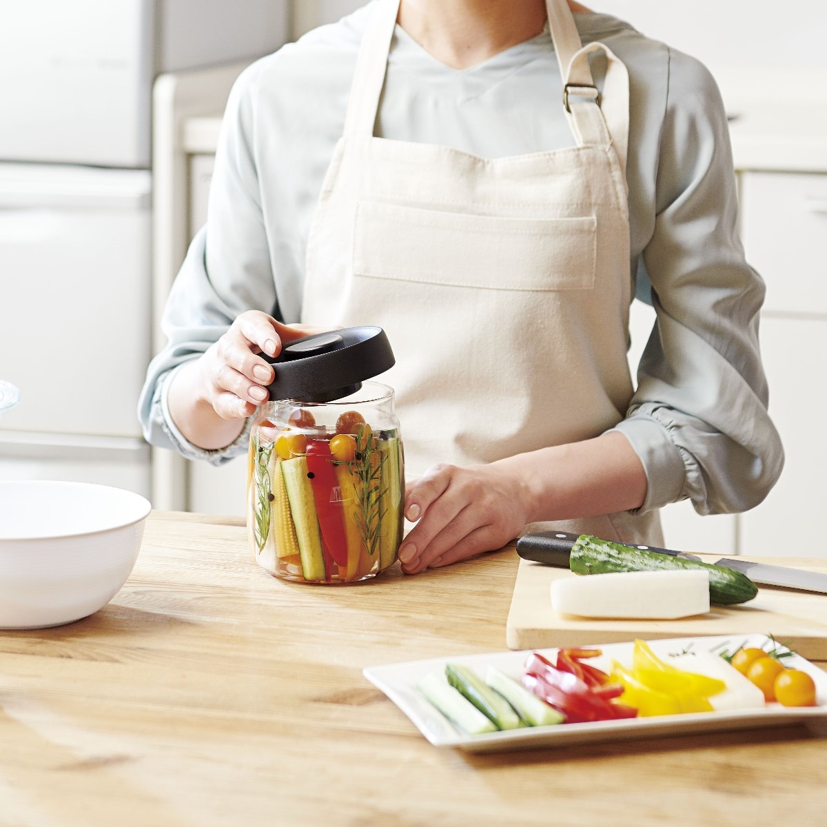 ガラスなので匂いが付きにくい。ラッキョウや漬物もお任せ!