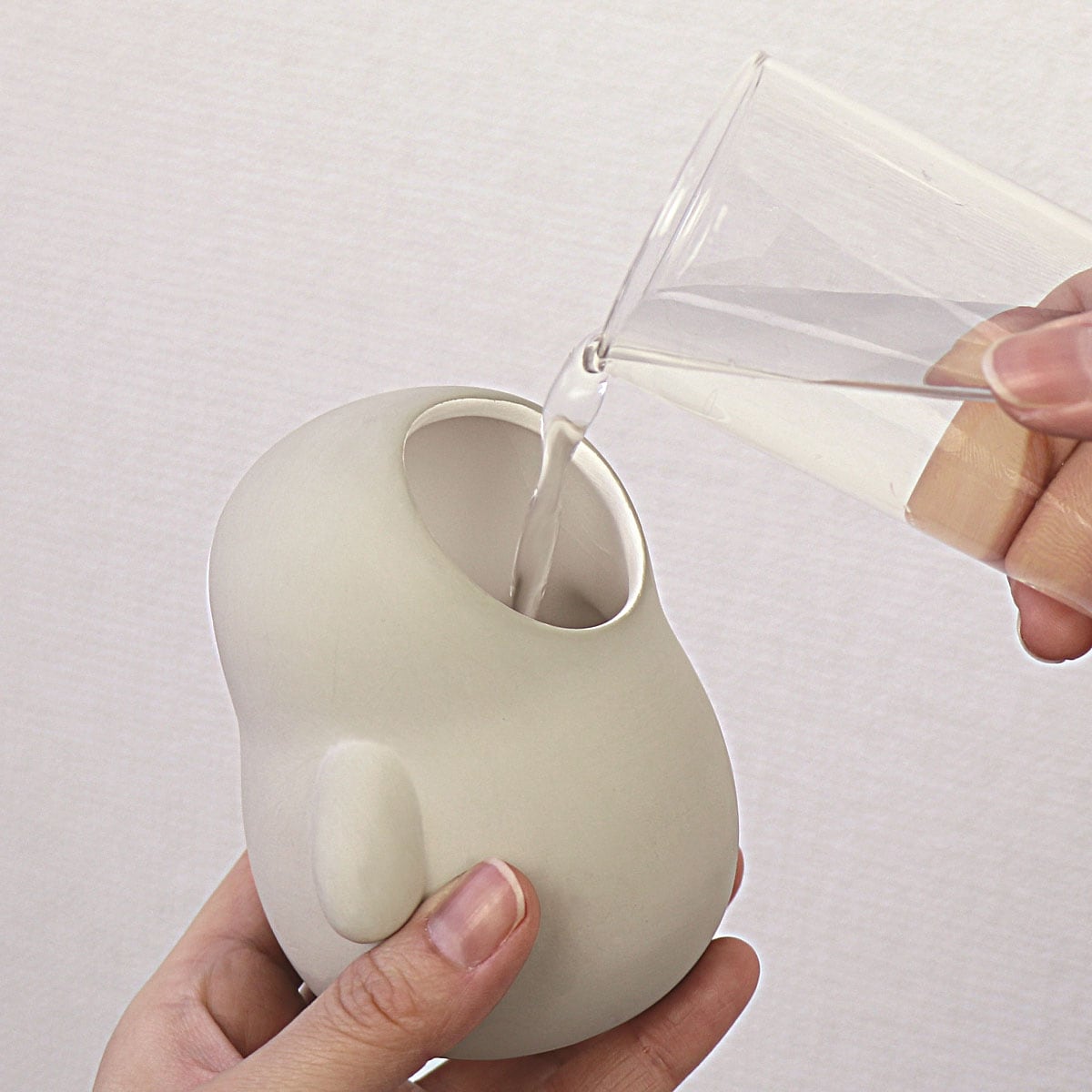 ■材質/[本体・受け皿]陶器 ■サイズ(約cm)/[本体]7.5×9.5×高さ10 [受け皿]直径 8.5×高さ2.3※水道水の水質によっては本体の表面にザラつきが出る場合があります。●中国製
