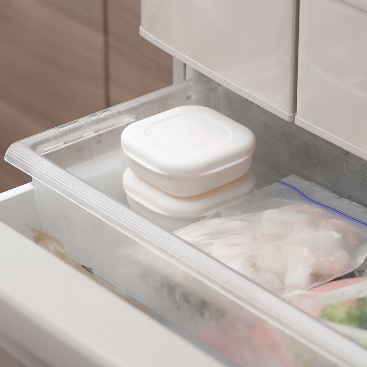 スタッキング可能で重ねて収納でき、冷蔵庫内でも省スペース