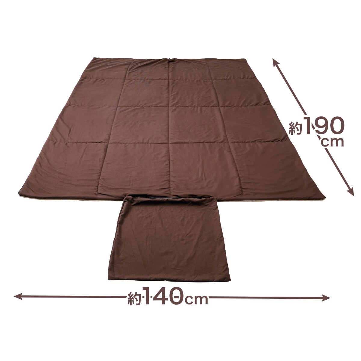 ■[表側・裏側]ポリエステル100% [中わた]ポリエステル・レーヨン ■[サイズ(約cm)]クッションサイズ/横45×縦45 寝袋サイズ/横70×縦190 布団サイズ/横140×縦190●洗濯機OK(ネット使用)●中国製
