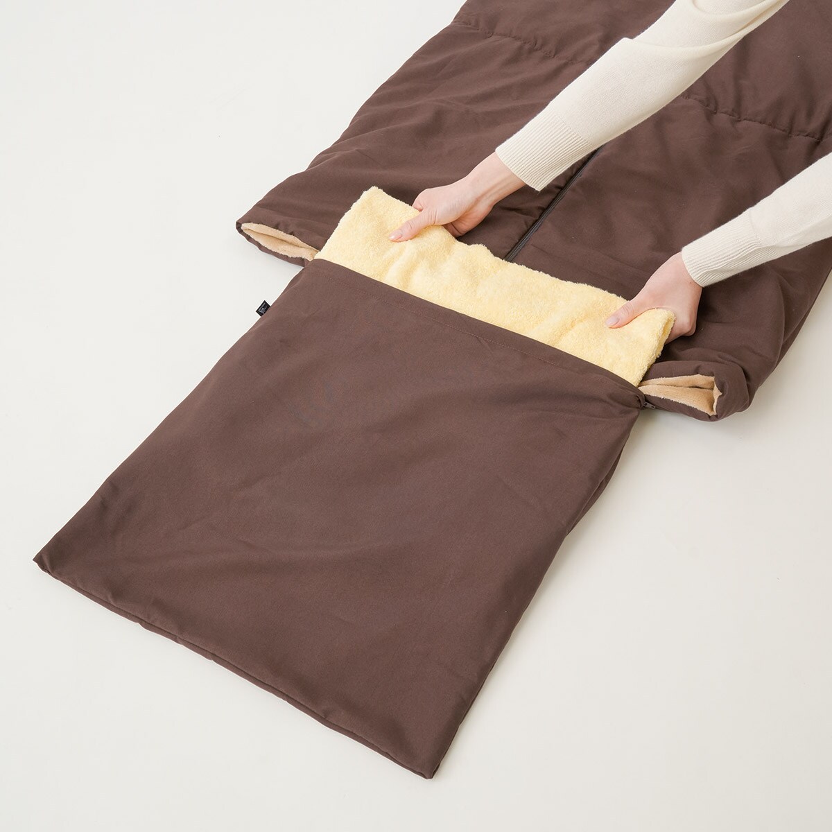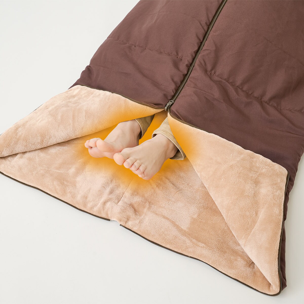両開きファスナーで足が出せます。