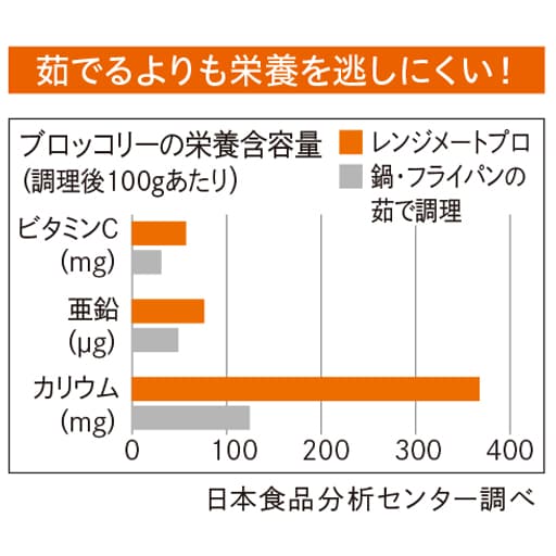 一般的なレンジ調理は「蒸し」で水分が多いのが特徴。レンジメートは高温・蓄熱でレンジ調理なのに香ばしく美味しい仕上がりに。