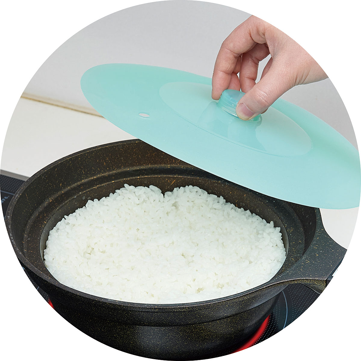 ■シリコーンゴム■サイズ(約cm)/[小]直径25 [大]直径30 ■耐熱温度/約220℃■適応サイズ/[小]20~24cmのフライパン・鍋 [大]:26~28cmフライパン・鍋※食洗機OK●中国製