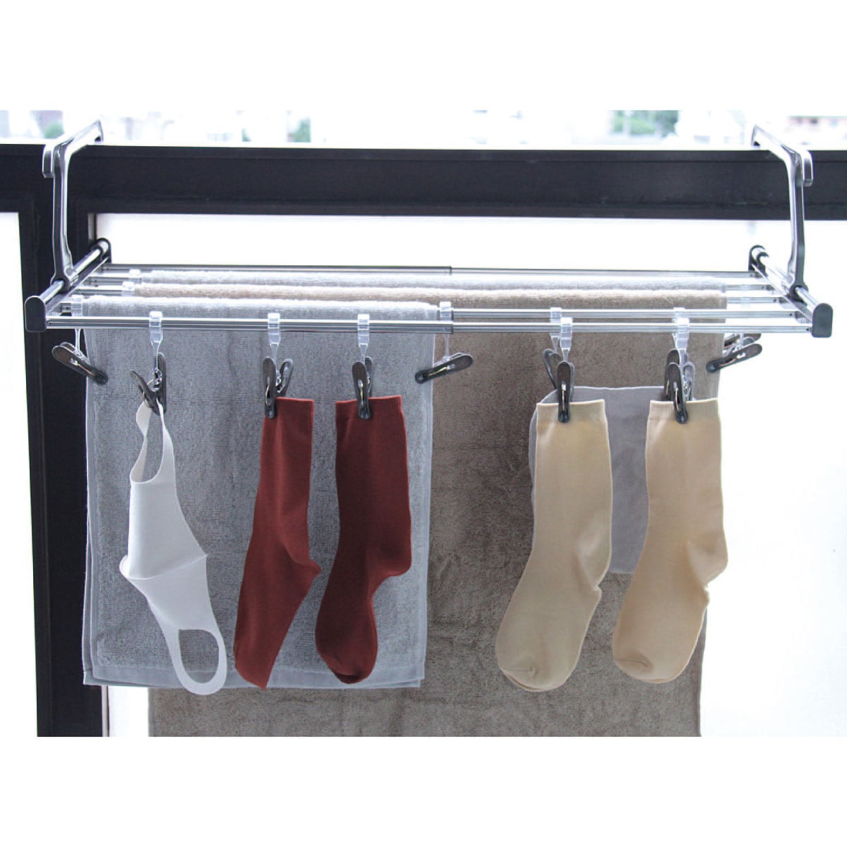 約幅41~75cmまで調整可能!小物から大伴バスタオルまで干すものに合わせて伸縮できます。