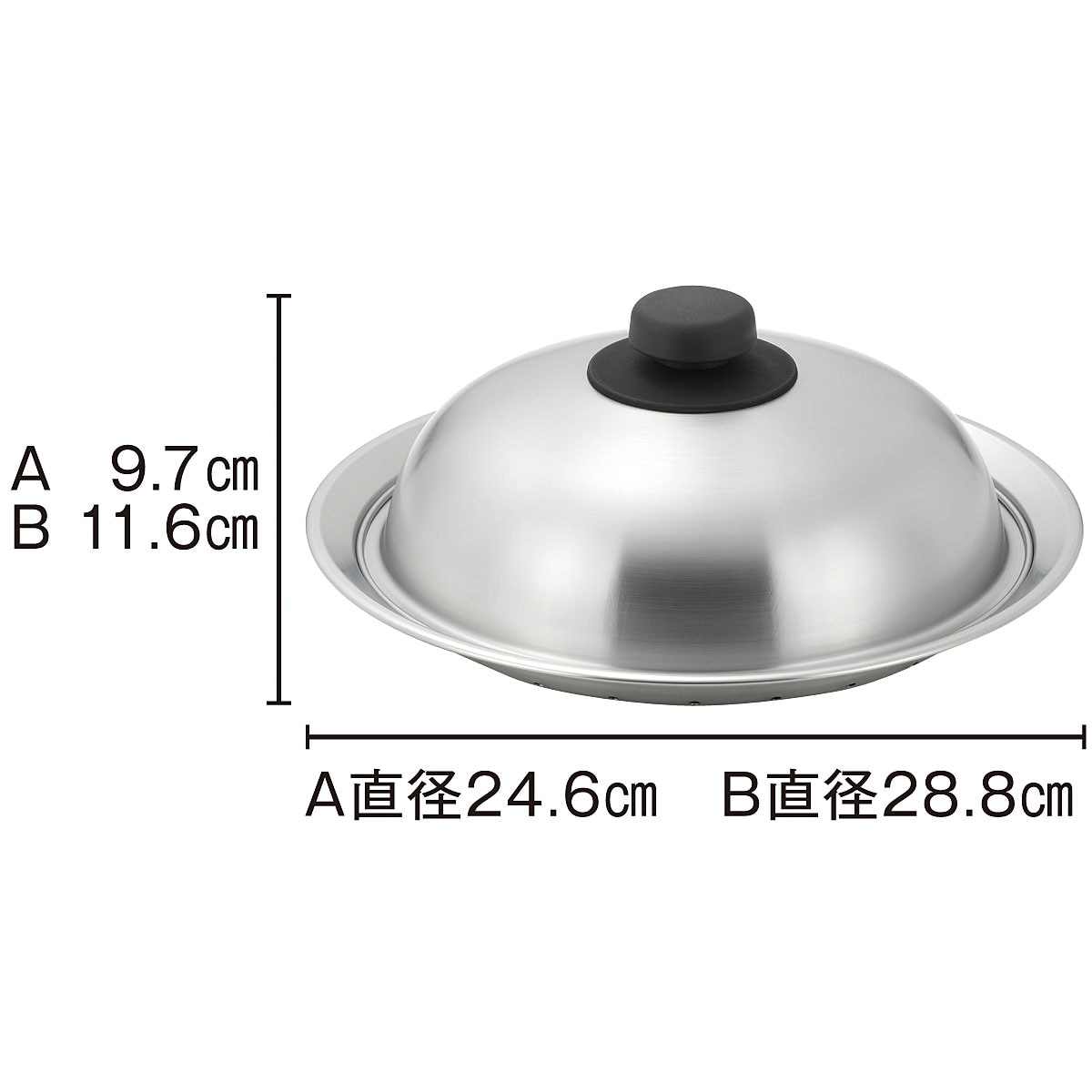 ■[プレート・フタ]ステンレス [ツマミ]フェノール樹脂 ■[サイズ(約cm)]A/直径24.6×高さ9.7 B/直径28.8×高さ11.6 ●セット内容/蒸しプレート本体×1、ドーム型ふた×1●日本製