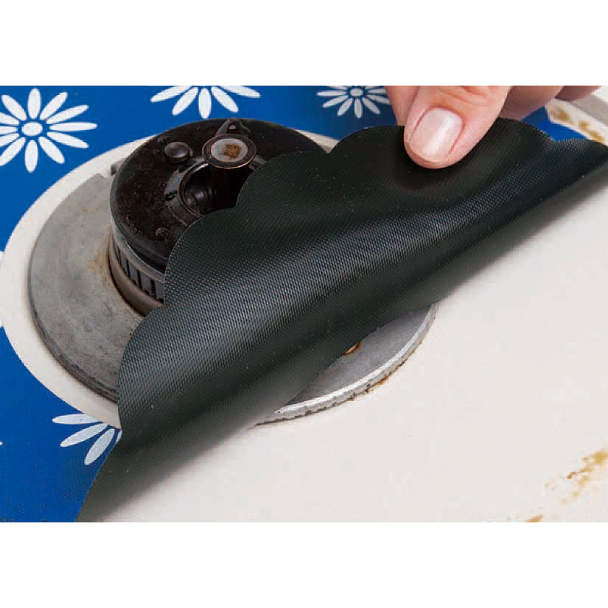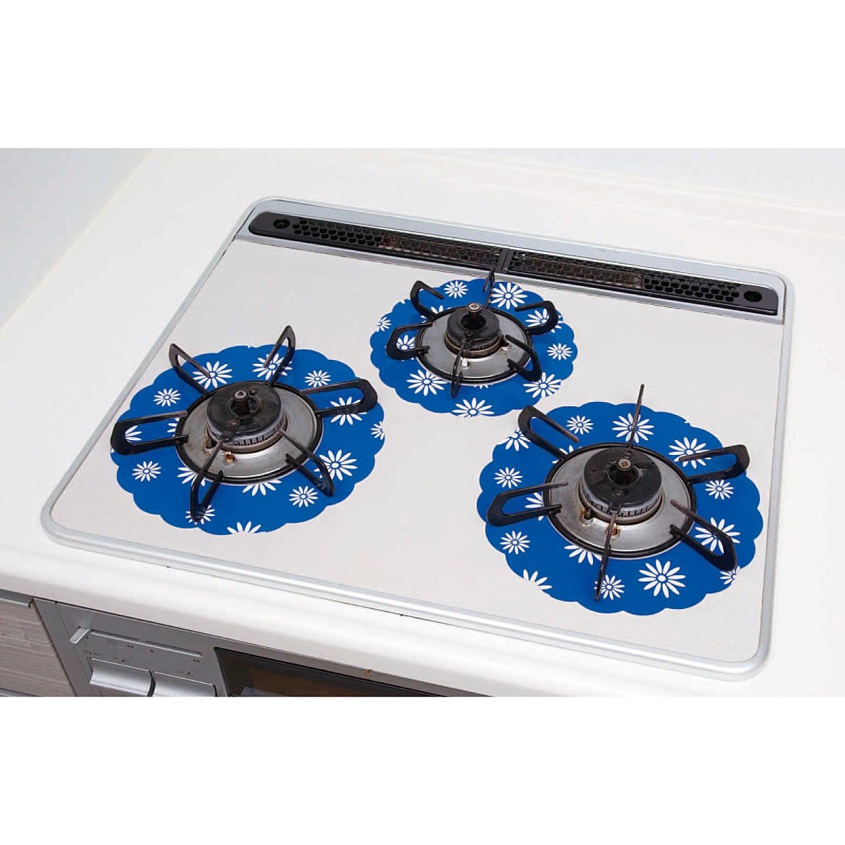 かわいい花柄とシンプルな黒のリバーシブルで油汚れからコンロを守ります!