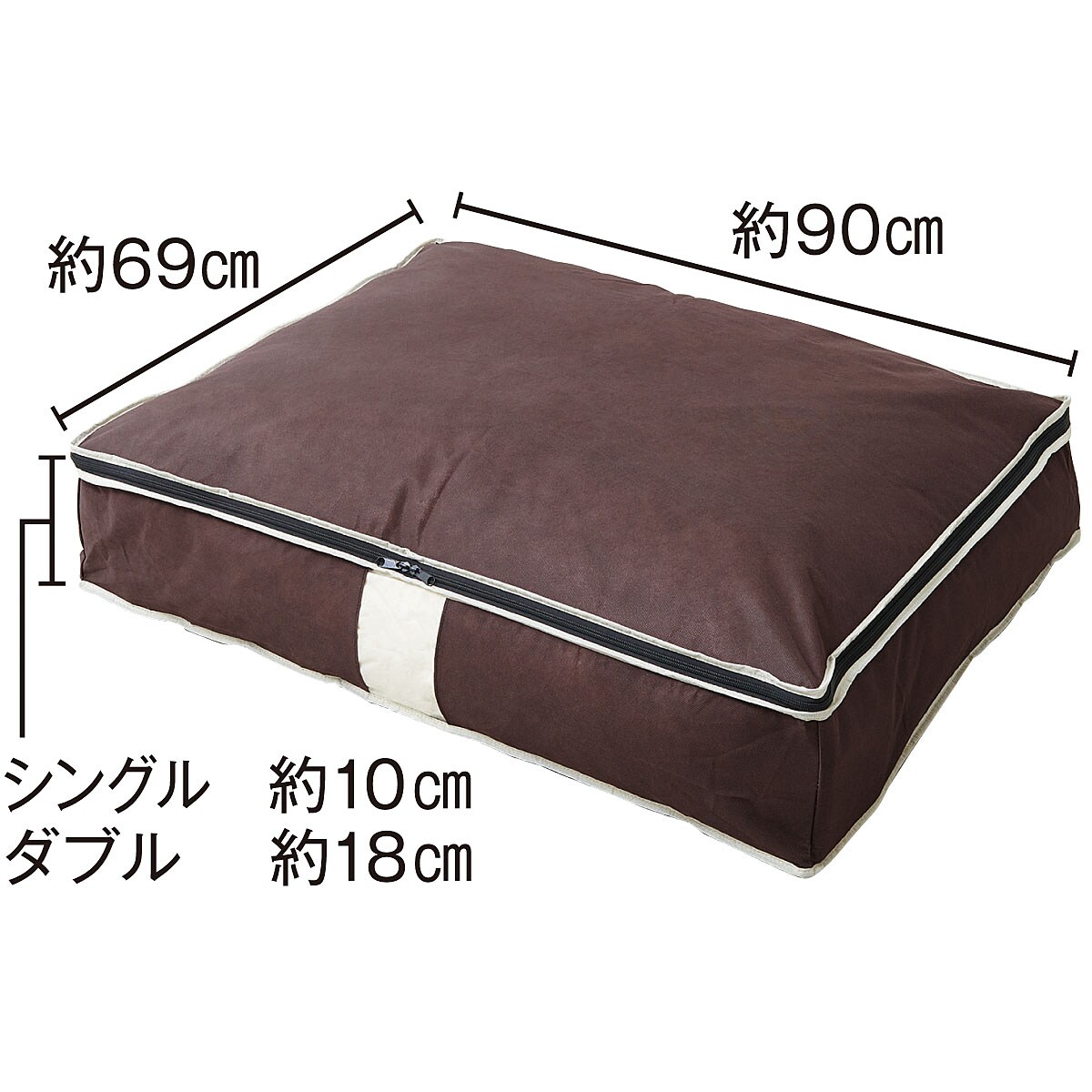 ■[本体]ポリプロピレン不織布 [窓]EVA樹脂 ■サイズ(約cm)/幅90×奥行69×高さ(シングル:10、ダブル:18) ■適応サイズ/各掛け布団サイズ1枚●中国製