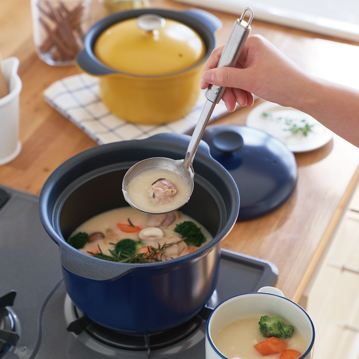 その名の通り万能な鍋。スチームプレート付きで蒸し料理も。蒸す、煮る、焼く、炊く、揚げる、など、多用途にお使いいただけ、ガス火・IHどちらでもご使用可能です。内側には1合炊き・2合炊き用の目盛りがあるので炊飯器としても。(最大4合)炊く、煮る、揚げる、蒸すのレシピを掲載したレシピブックつきで、プレゼントにもおすすめです。