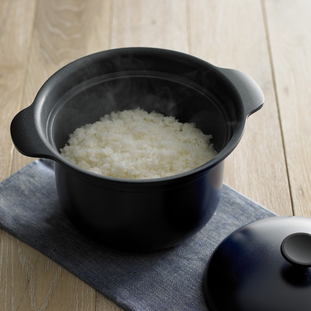 ごはんを炊くときにも便利な万能鍋。内側には目盛りもあり、小サイズは最大4合、大サイズは6合まで炊飯できます。