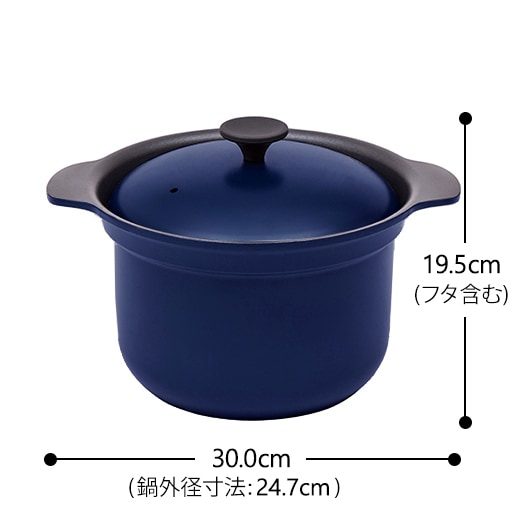 ■[本体・フタ]アルミニウム合金(外面/耐熱焼付塗装、内面/フッ素樹脂加工) [スチームプレート]ステンレス [ツマミ]フェノール樹脂(シリコンカバー) ■サイズ(約cm)/30×24.7×高さ19.5 ■重量/約1711g ■満水容量/約4.8L ●対応可能熱源/直火、IH、オーブン(蓋は外してください) ●レシピリーフレット付き●中国製