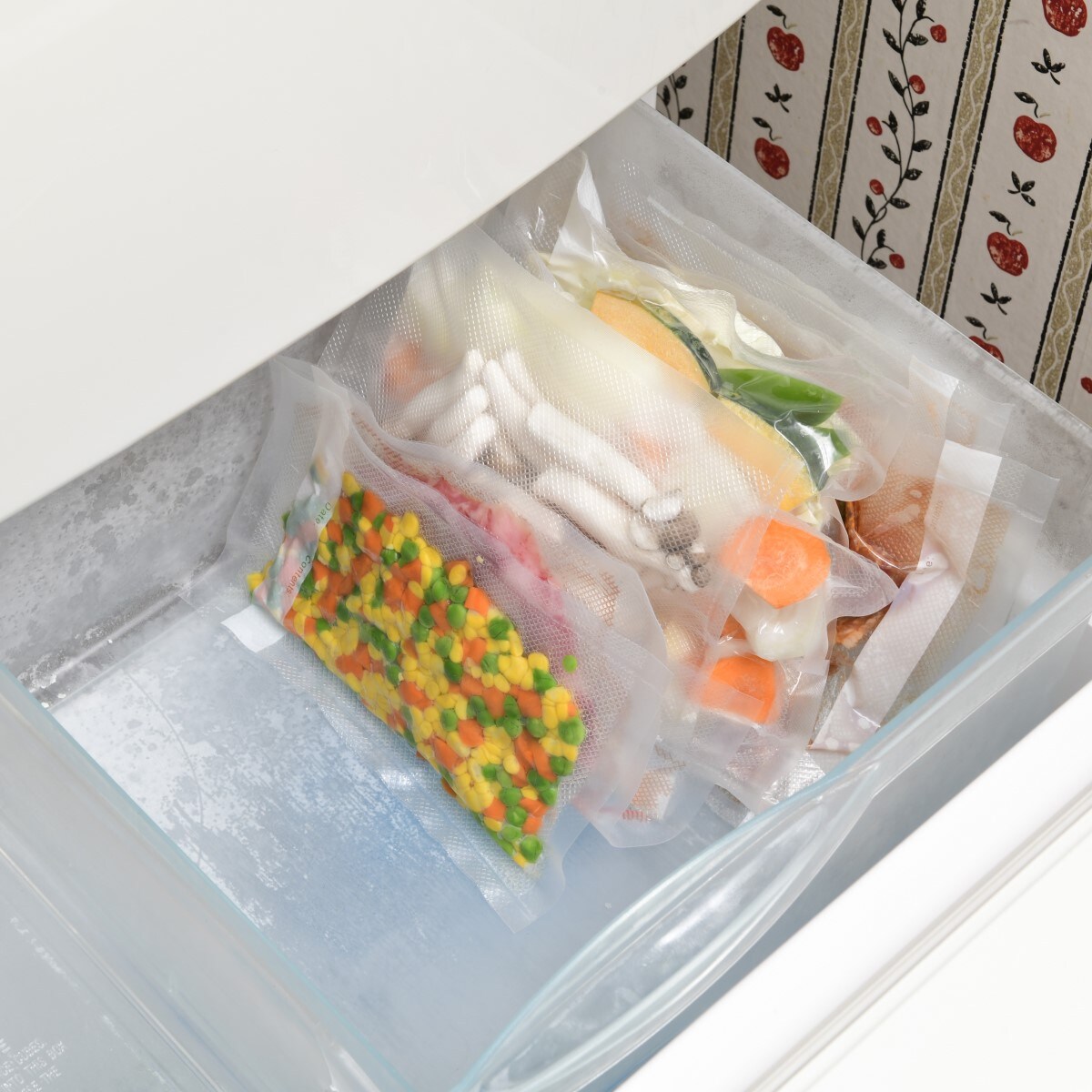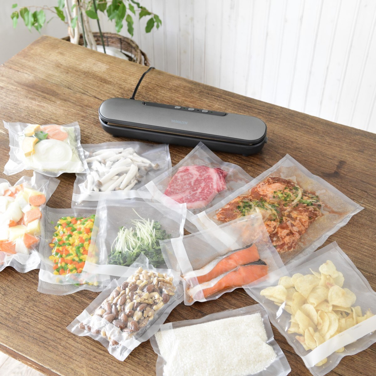 食品も、開封済みのお菓子も美味しさキープ!※画像は使用イメージです。肉や魚は水分を吸い込むため、必ず冷凍してからラップに包んで脱気密封してください。