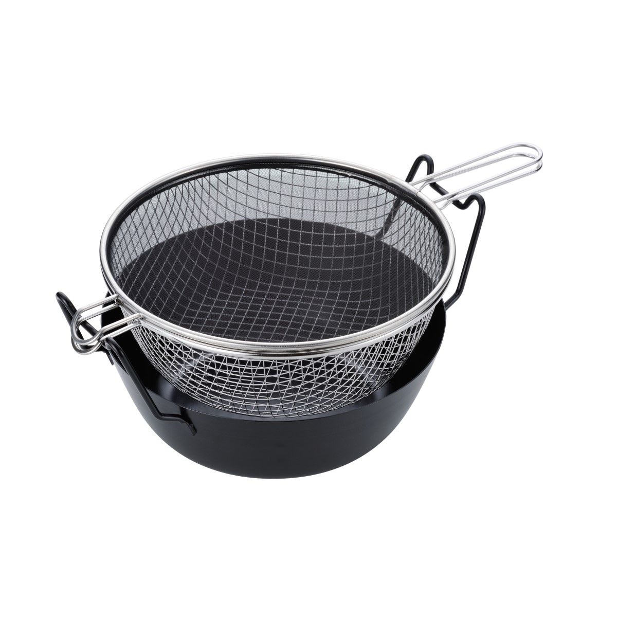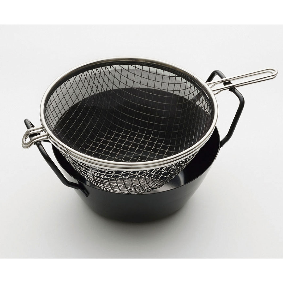■[揚げ鍋]鉄(シリコン樹脂塗装) [揚げかご・油はね防止ネット]ステンレス鋼 ■サイズ(約cm)/鍋直径22 持ち手から持ち手まで29 鍋底の直径12 深さ9 ■重量(約kg)/[鍋]1[揚げかご]0.2 [ネット]0.18 ■適正油量/約850g ●セット内容/揚げ鍋、揚げかご、油はね防止ネット各1 ●対応熱源/ガスコンロ、IHクッキングヒーター、シーズヒーター、ハロゲンヒーター、エンクロヒーター、ラジエントヒーター●日本製【IH200V対応】