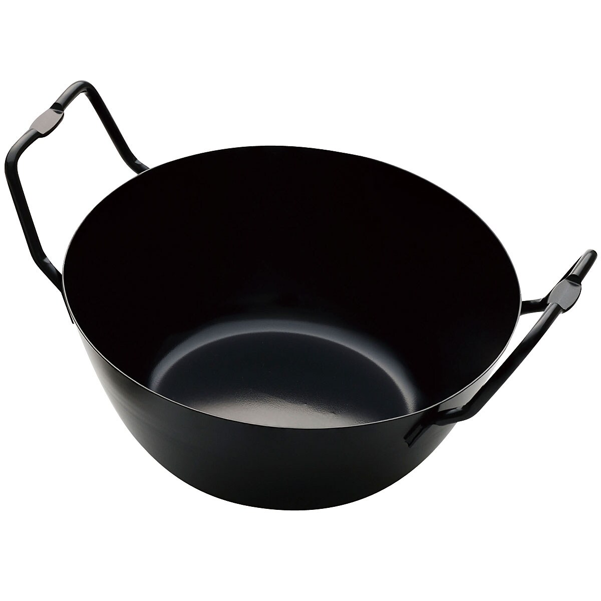 揚げ鍋は蓄熱性能が高くカラッと揚げられる鉄製にこだわりました。高級銅板を使用し、表面を焼き入れしているため、サビにくくお手入れも簡単。下をすぼめた深い形状にしたことで、油はねもしにくく、何より少ない油量で揚げることができます。しかも3点すべて重ねられるので、収納も便利です。もっと手軽に、美味しい揚げ物を食べてほしいという思いの詰まった商品です。