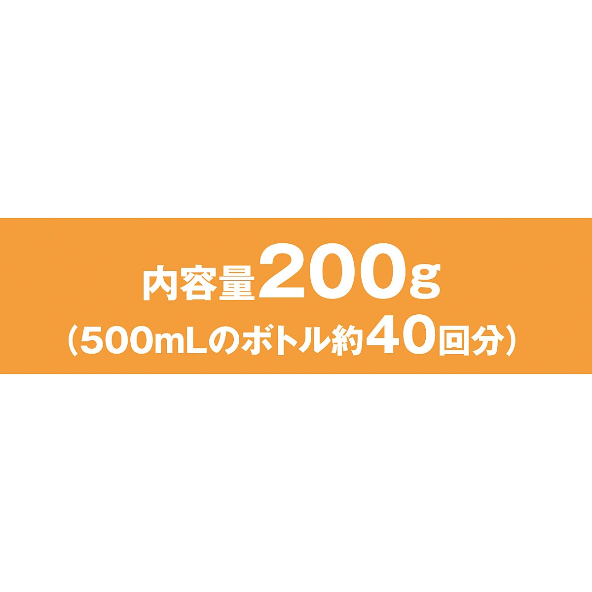 ■成分/過炭酸ナトリウム(酸素系)、炭酸ナトリウム、ホタテ貝殻粉末 ■液性/弱アルカリ性 ■正味量/200g ■使用量の目安/洗浄する容器の容量に対して1%の量の本品を投入(例:500mLの容器の場合は5g)●付属品/5gの計量スプーン ※使用できないもの/水洗いできないもの、革、宝石、アクセサリー類、木製の製品、金銀線模様のある陶磁器類、メッキ類、塗装面、表面コーティング質、アルミ、アルマイト製品、漆器、金銀等の貴金属製品●日本製