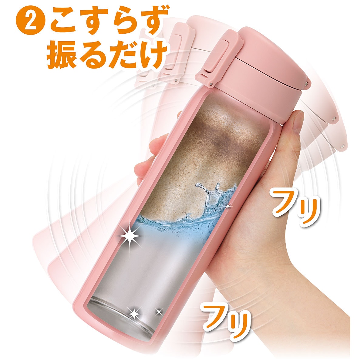 本剤と水を入れ、20秒振るだけでスポンジが届かない底も簡単にキレイになります。つけ置き洗いでボトルのフタにも使用できます。急須・水筒・マグカップ・湯のみなどに。