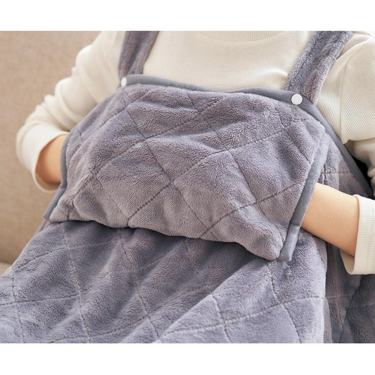 寝袋のような形状で、お腹から足先まですっぽりと覆ってあったか。冷えが気になる下半身を中心にピンポイントで暖めるので経済的です。身長に合わせて4段階に調節できる肩ヒモ付きなのでズレ落ちず快適な着心地。ふんわりフランネル素材。しかも足袋付きで足先まであったかです。在宅ワークに最適。サイドファスナーを開けるとひざ掛けにもなります。手を入れられるポケット付き。汚れたら洗濯機で丸洗いできるので、いつでも清潔にお使いいただけます。