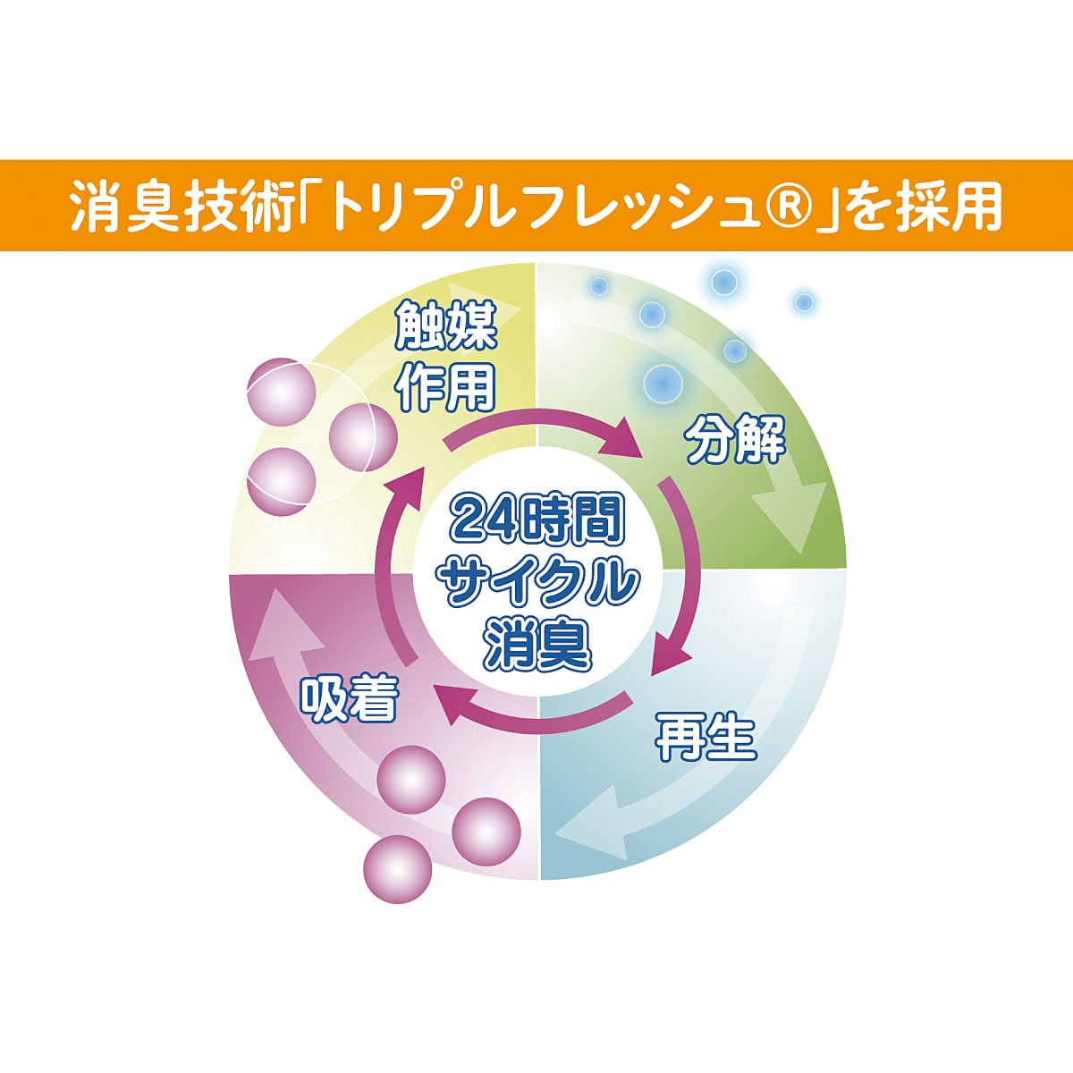 気になるニオイを消臭する「トリプルフレッシュ」を搭載。24時間のサイクル消臭でお部屋のニオイすっきり。