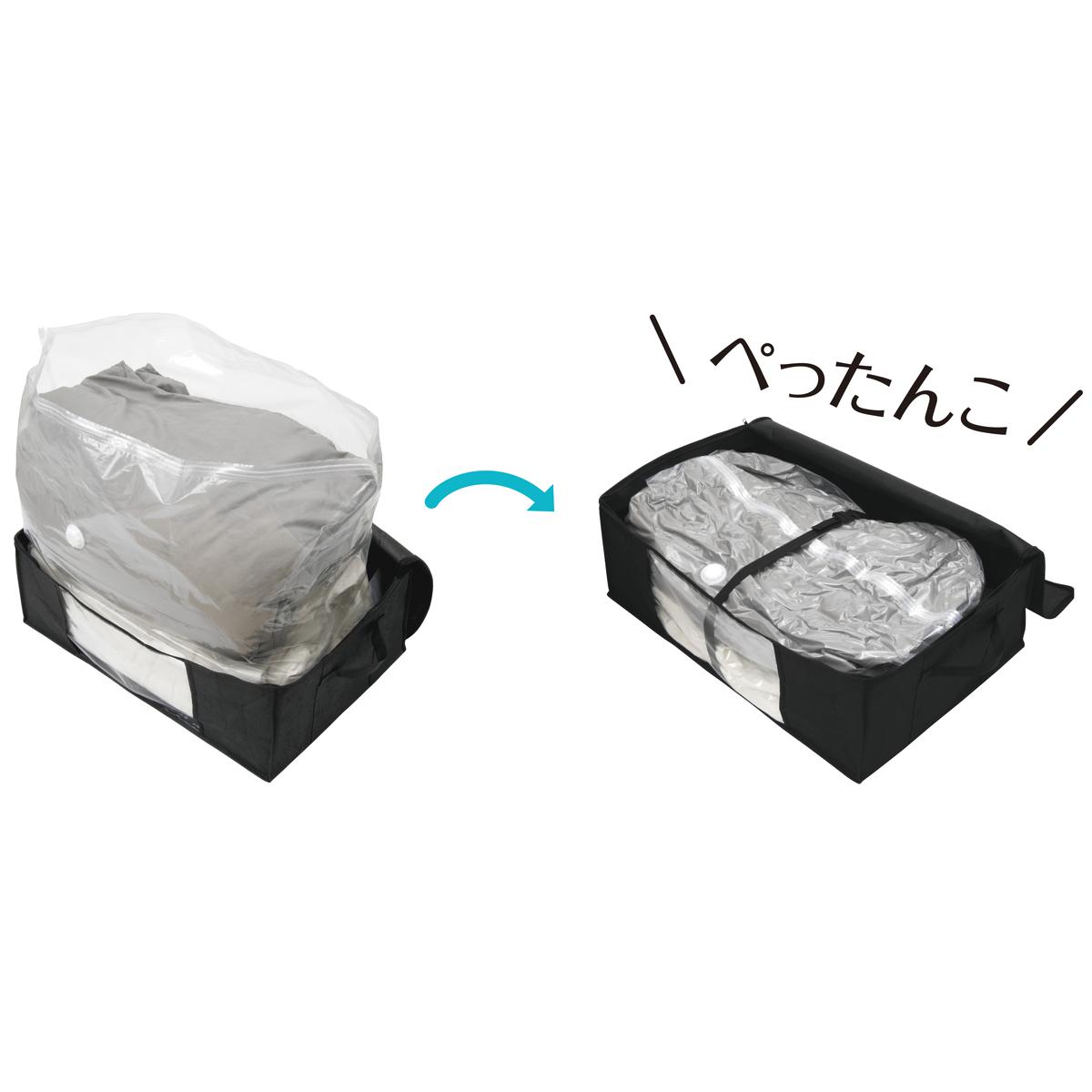 ■[本体]ポリプロピレン[窓部]EVA[圧縮袋表]ナイロン[圧縮袋裏]ポリエチレン■サイズ(約cm)/[衣類用]40×40×25[布団用]70×50×25■重量(約g)/[衣類用]480[布団用]1060■収納目安/[衣類用]ダウン3~4枚、フリース4~5枚[布団用]羽毛布団シングル2枚▼掃除機の種類によっては使用できないものがあります。▼1分以上吸引すると掃除機に負担がかかり故障の原因になります。▼フェザー20%以上の羽根製品やダウン80%以下の羽毛製品はご使用をお止めください●洗濯不可●中国製