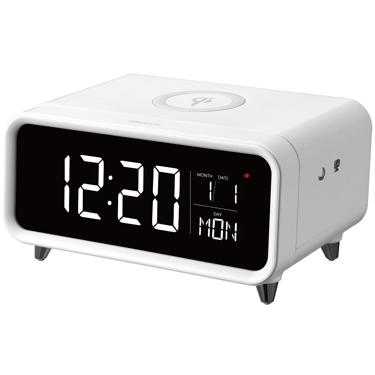 ■サイズ(約cm)/幅17.0×奥行11.0×高さ8.9 ■重量/約355g ■電源/ACアダプター&CR2032(付属) ■機能/日付表示、ワイヤレス充電(5W)(対応機種のみ)、液晶明るさ切替(4段階)、アラーム・スヌーズ ※スマホケースは3mm以下、Qi規格に対応したもののみご利用できます。【航空便不可】●中国製【返品・交換不可】 【保証書付1年間】