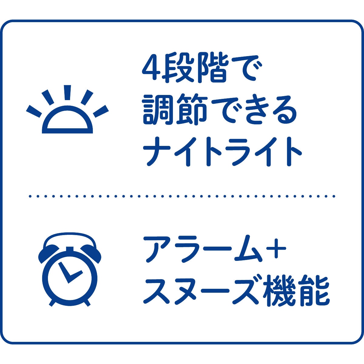 4段階で調節できるナイトライト アラーム+スヌーズ機能