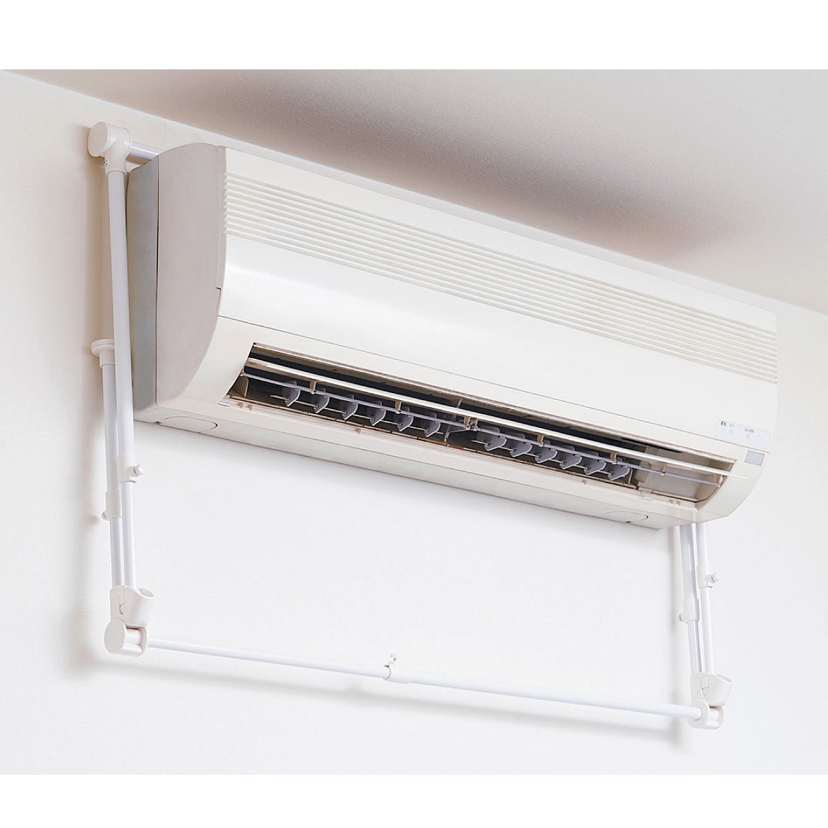 エアコンに引っ掛けるだけの簡単取り付けで、雨や花粉から守りながら洗濯物をすばやく乾燥。64~84cmまで調整できてぴったり設置できます。使わない時はすっきりと折りたためます。