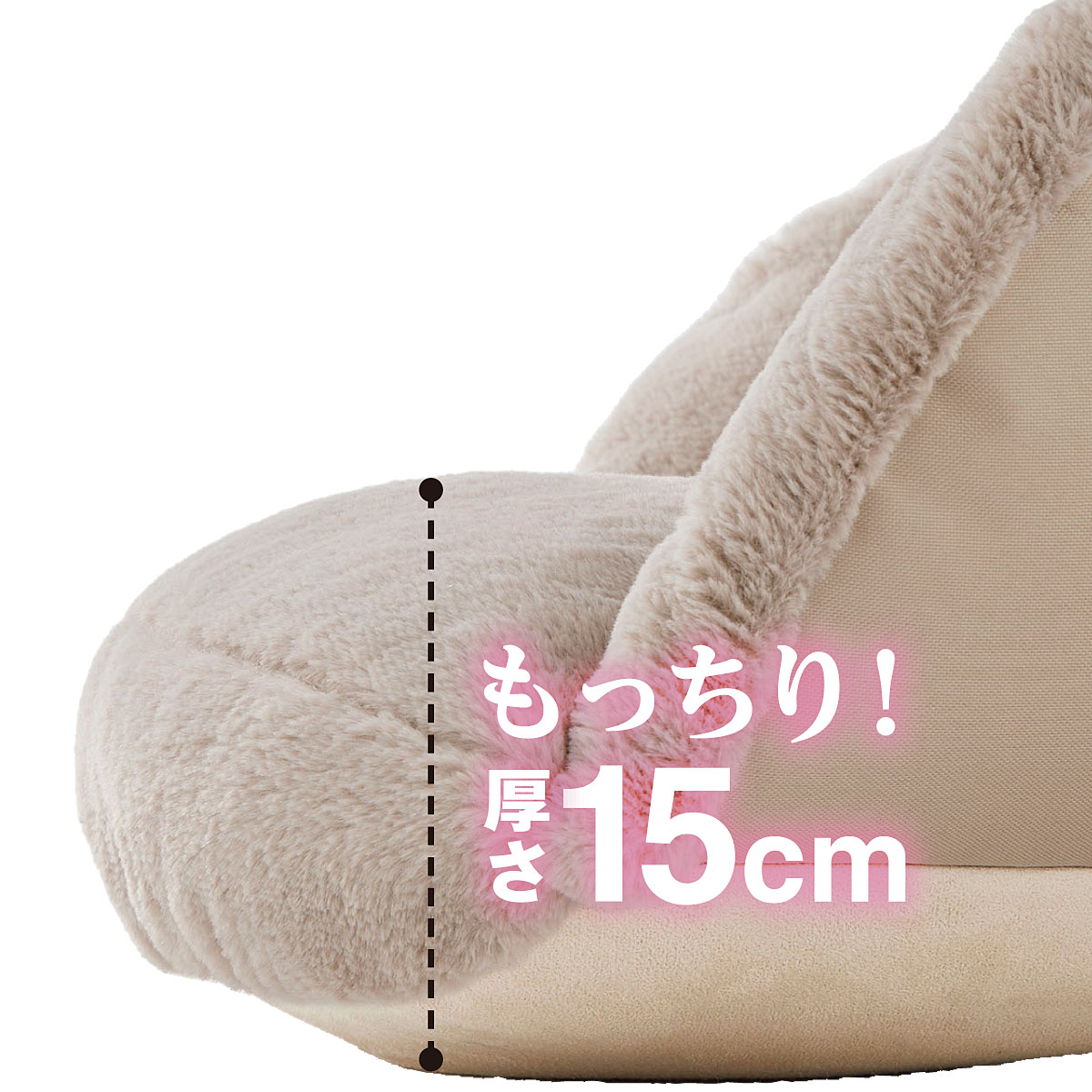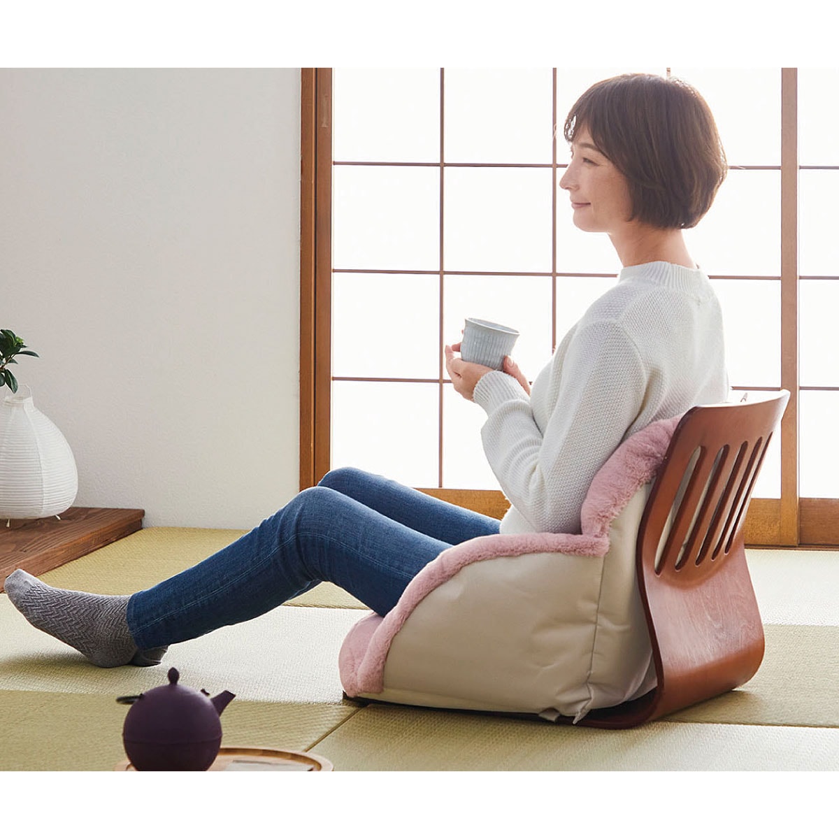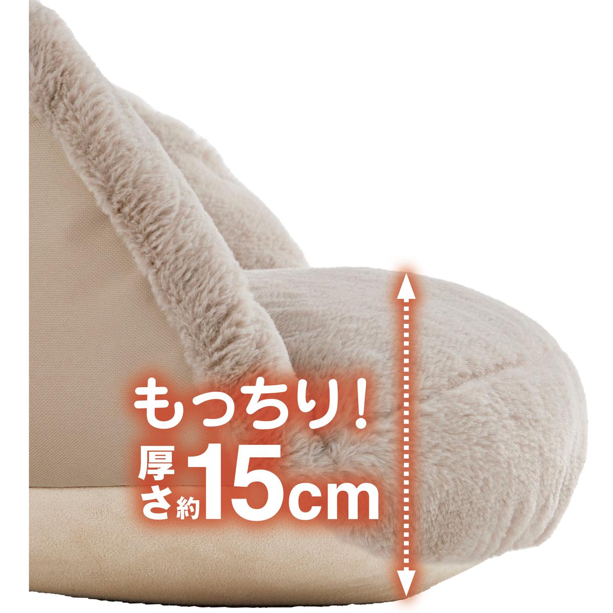 冬は普段使っているクッションを座椅子型ボリュームクッションに変えてみませんか?底面は複層構造でもっちり&暖か。冷えやすい腰周りをもっちり素材が包み込み、暖かく快適な座り心地に。こたつと一緒に使用することでより暖かく。座椅子に合わせ座り心地よく。持ち運びに便利なループ付き。