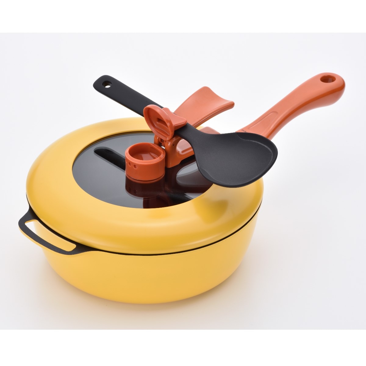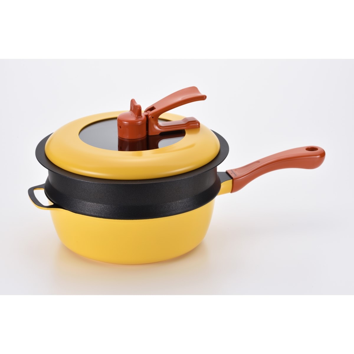 発売20年を迎え、いまだに人気の料理愛好家・平野レミさん考案、話題の「レミパン」。使いやすさを重視し、カラーも可愛く機能面も充実。平野レミさんが「簡単で使いやすい鍋」をテーマに考えた、「こんなのがあればいいな…」の使いやすい便利な機能やウレシイ工夫がいっぱい!蒸す・焼く・揚げる・煮る・炒める・炊くといった様々な調理が手軽にできる便利鍋です。スタンド式の蓋や、水差しがしやすい蒸気穴などアイデアが満載。