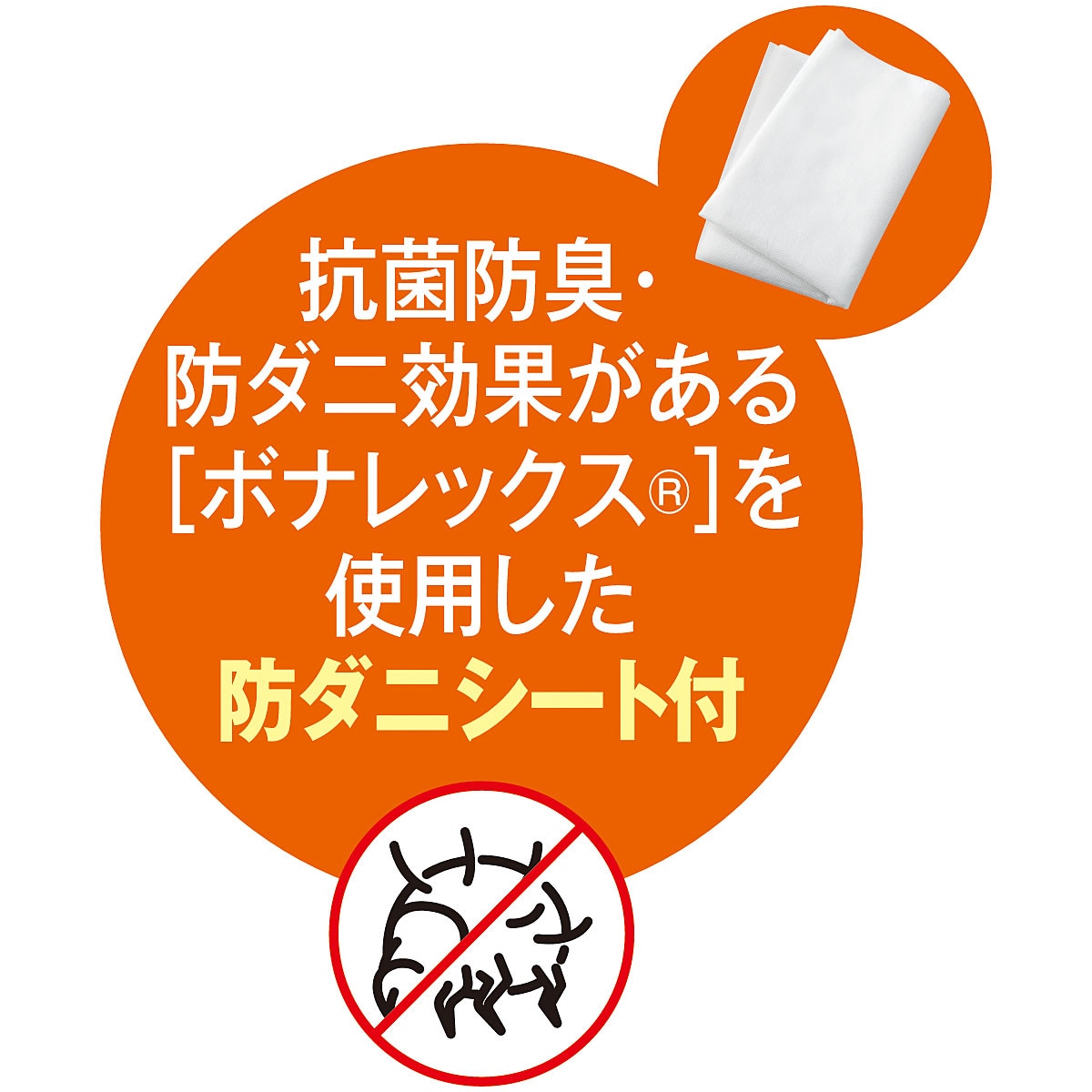 ■[本体]ポリエステル [防ダニシート]ポリプロピレン ■サイズ(約cm)/[本体]45×30×50[防ダニシート] 38×105 ■重量(約g)/295■セット内容/本体、防ダニシート●使用の目安/掛け布団シングル(150×210cm)なら1枚程度●洗濯機OK●中国製