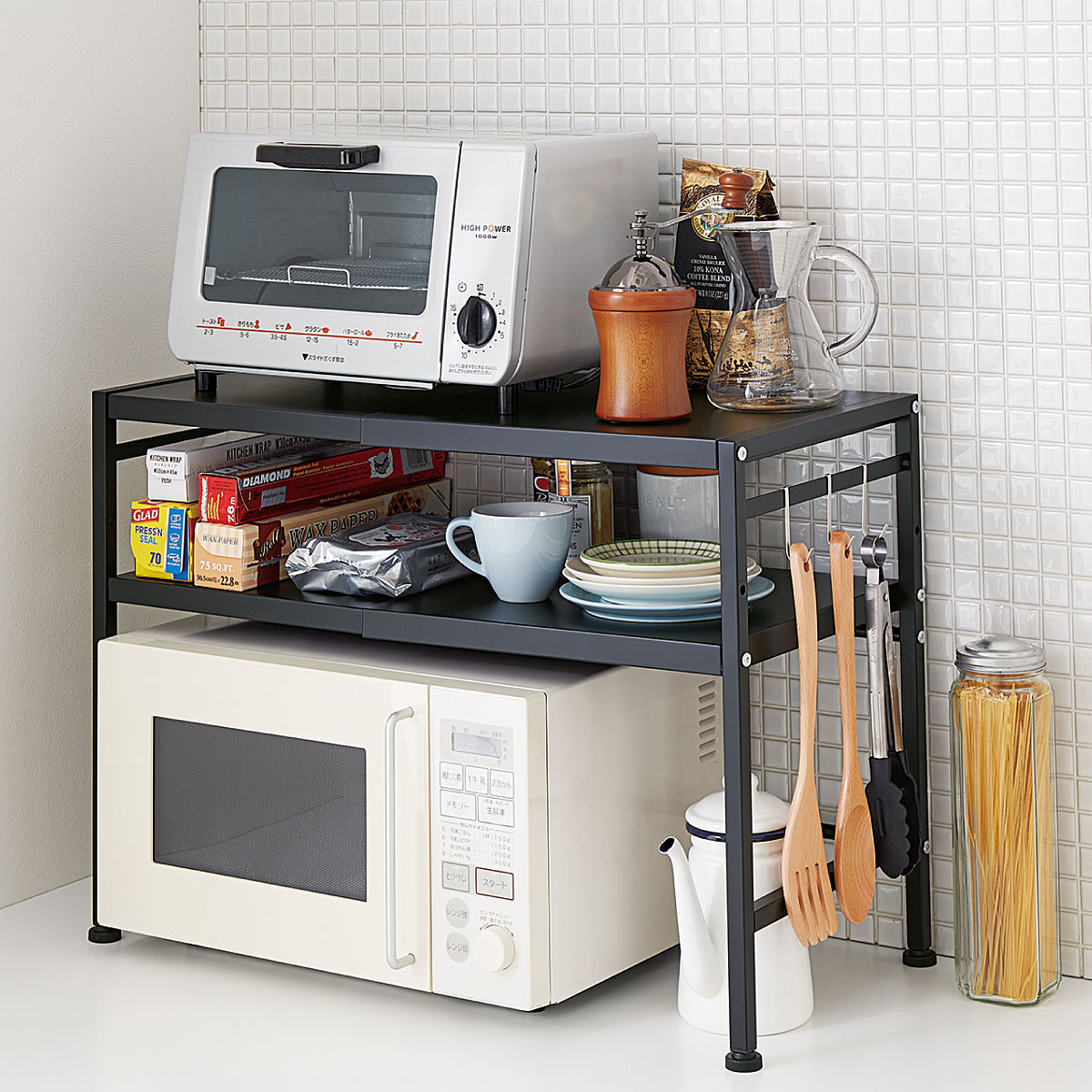 このスペース勿体ない!レンジ上のデッドスペースを有効活用できるレンジラック!