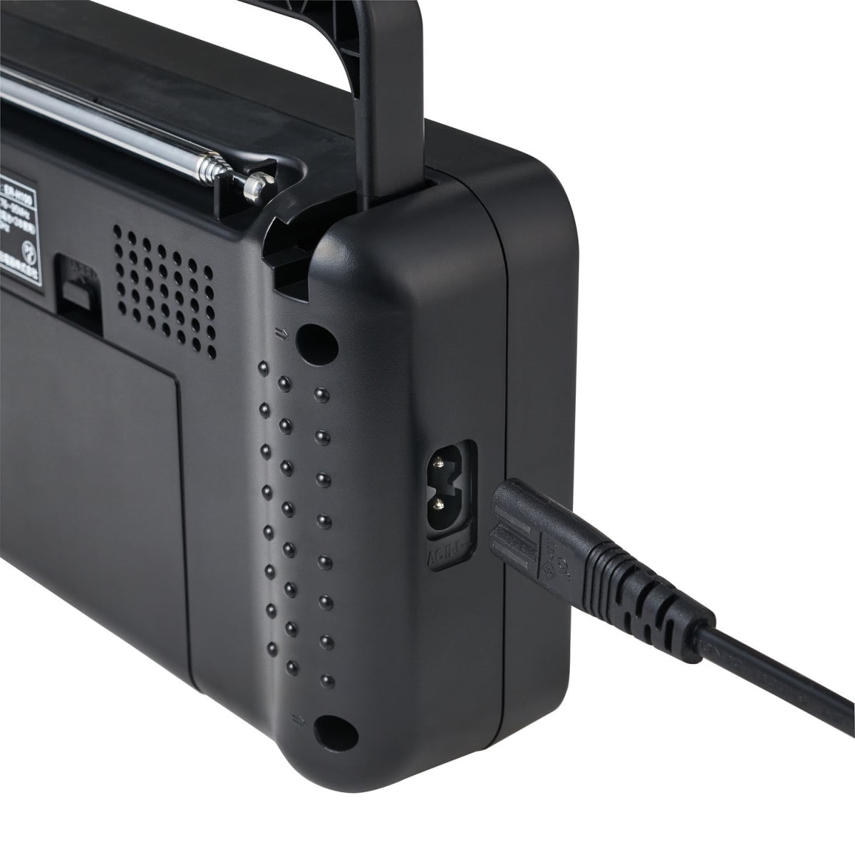 単1形乾電池とAC電源コードの2電源対応。文字盤も大きく選局しやすい。