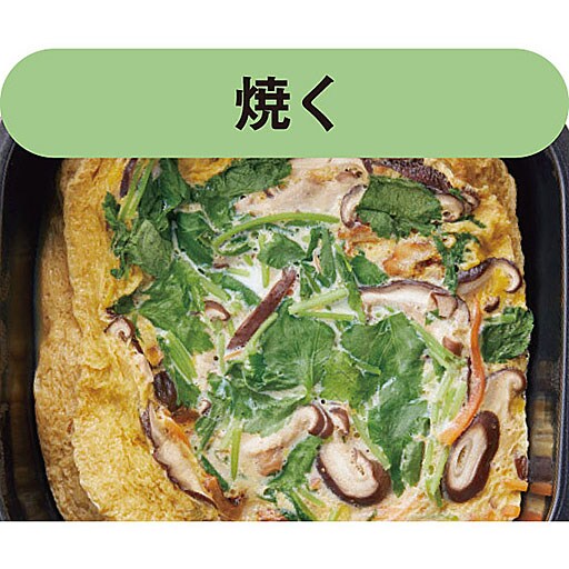 蒸気を空気調節口から適度に逃がすことで、容器内の圧力が一定に高まり、しっかり熱を通します。焼く、茹でる、炊く、炒める、蒸す、煮る、これ1台で便利な6役!