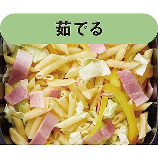 蒸気を空気調節口から適度に逃がすことで、容器内の圧力が一定に高まり、しっかり熱を通します。焼く、茹でる、炊く、炒める、蒸す、煮る、これ1台で便利な6役! 火が通りやすいので、時短調理も可能。料理から出る不要な油分や水分を落とすマルチプレート付き。専用の「クッキングガイド」付き。すぐに作れる、豊富なレシピーを掲載しています。