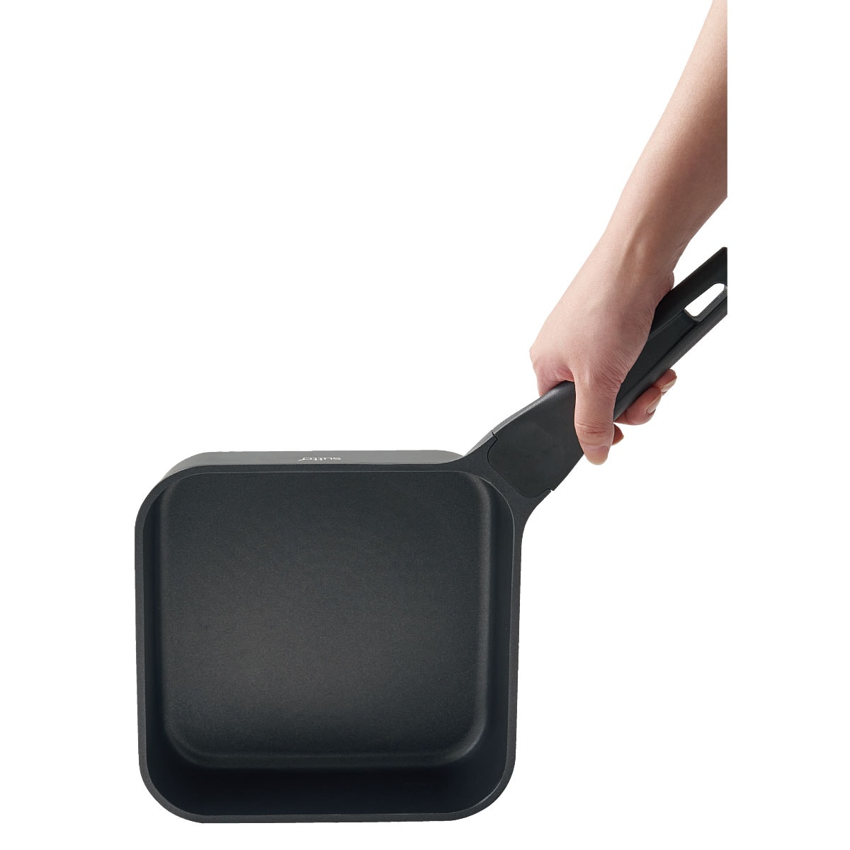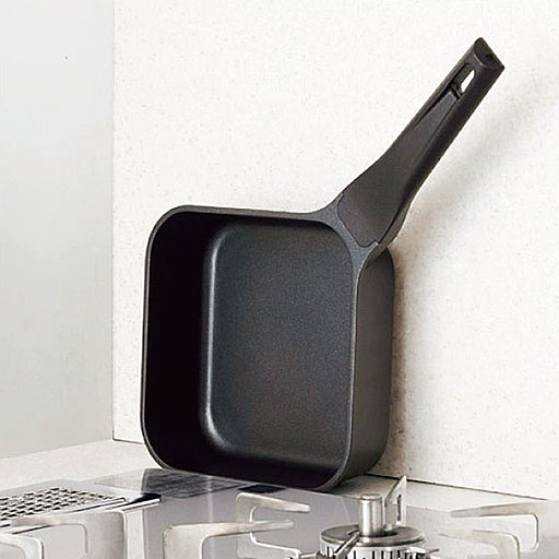 意外と収納に場所をとるフライパンを四角くすると、省スペース収納と使い勝手のよさがググっとアップ!深型なので煮込み料理や汁物にも使えます。