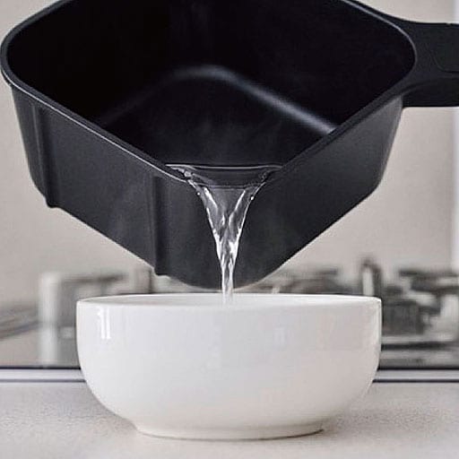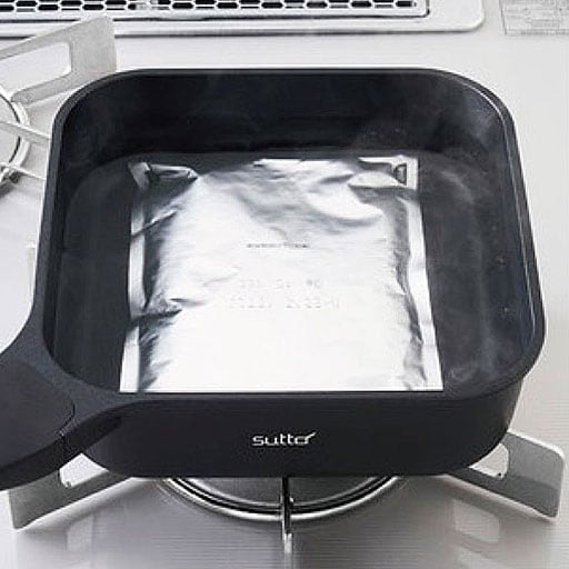 意外と収納に場所をとるフライパンを四角くすると、省スペース収納と使い勝手のよさがググっとアップ! 深型なので煮込み料理や汁物にも使えます。立てておけるから、調理を始める時もサッと手に取れてストレスフリー。四角いレトルトパックがきれいに収まるサイズです。角があるので、お湯や具材をこぼさずに注げます。