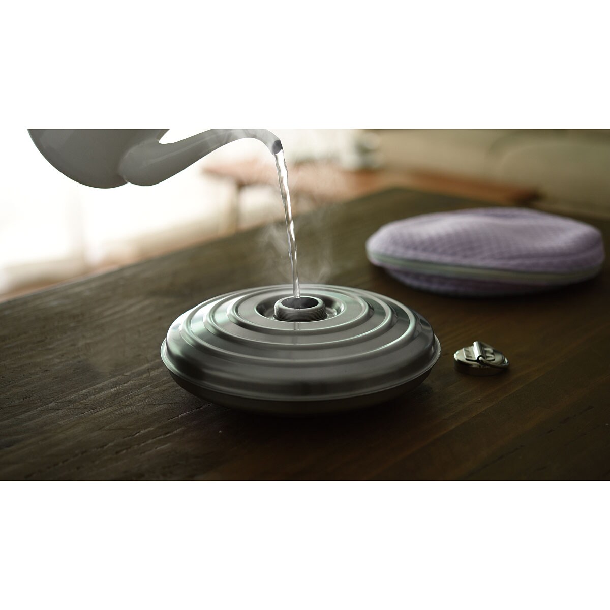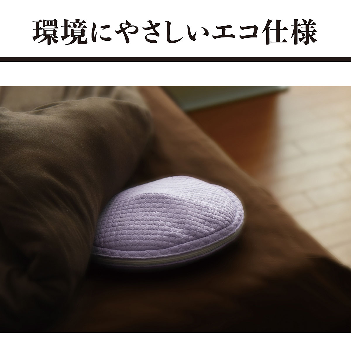 直径23cmの薄型なので持ち運びも手軽。昼夜を問わずやさしいぬくもりで温めます。