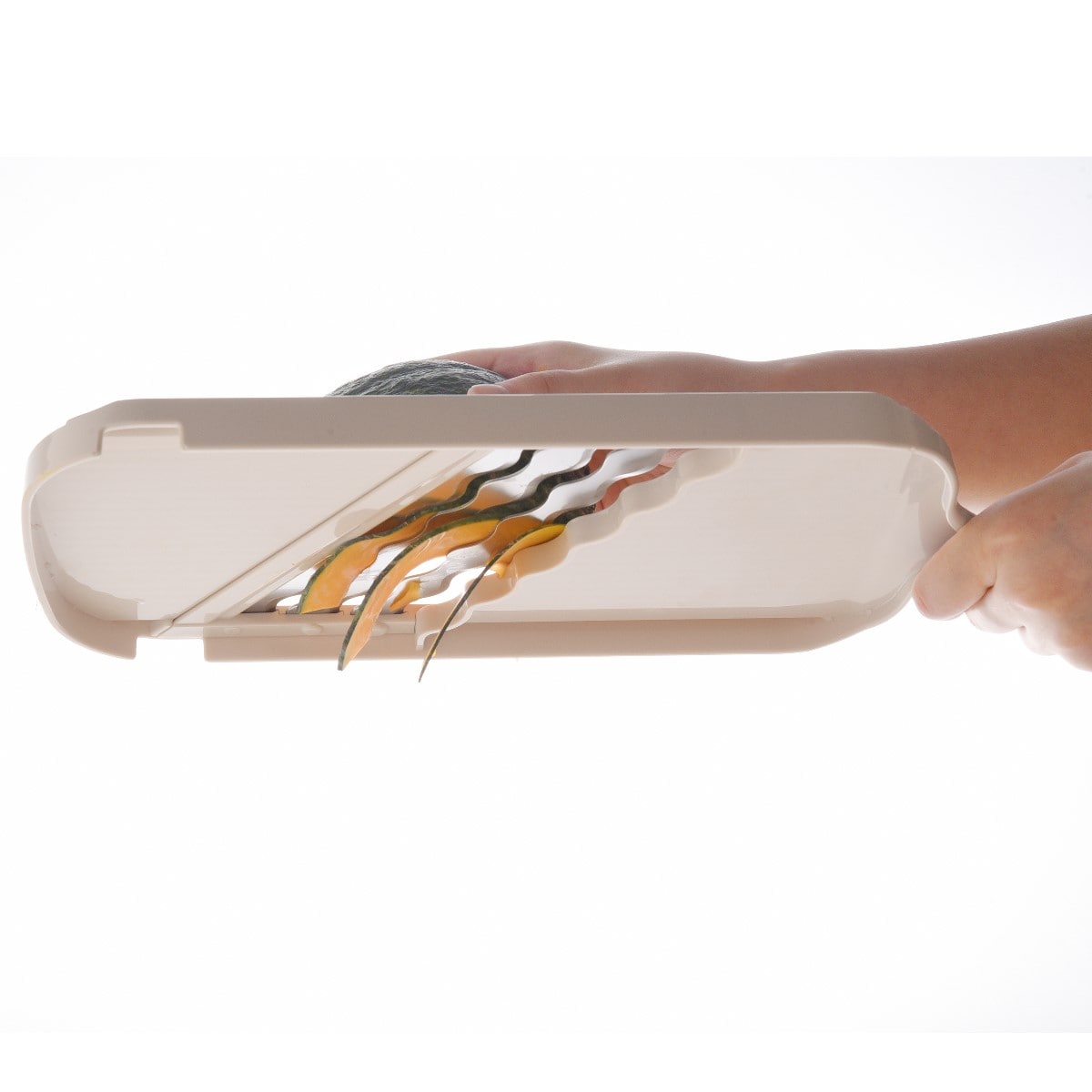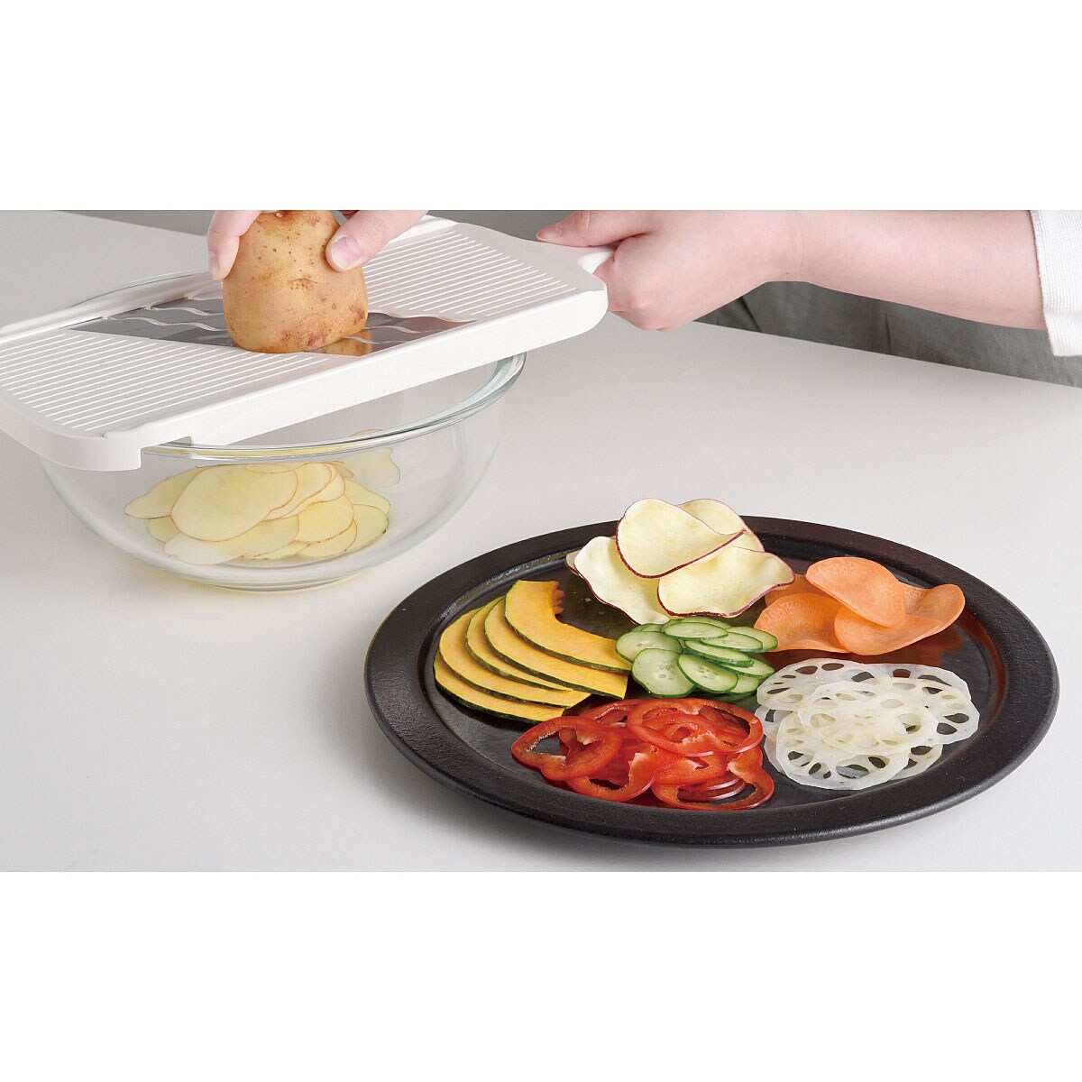 ■[スライサーボディ・安全ホルダー]ABS樹脂 [切れ刃]ステンレス刃物鋼■サイズ(約cm)/[スライサー]14.5×37×高さ2.5 [安全ホルダー]15×12×高さ4.5■重量(約g)/[スライサー]240 [安全ホルダー]70※食器洗い機、乾燥機は使用できません●日本製