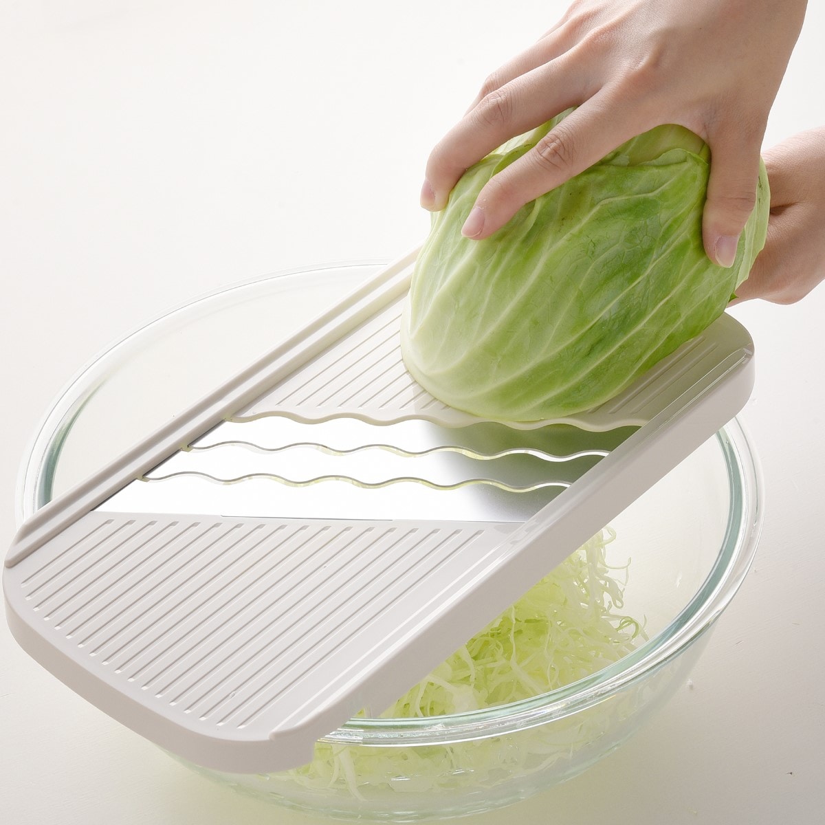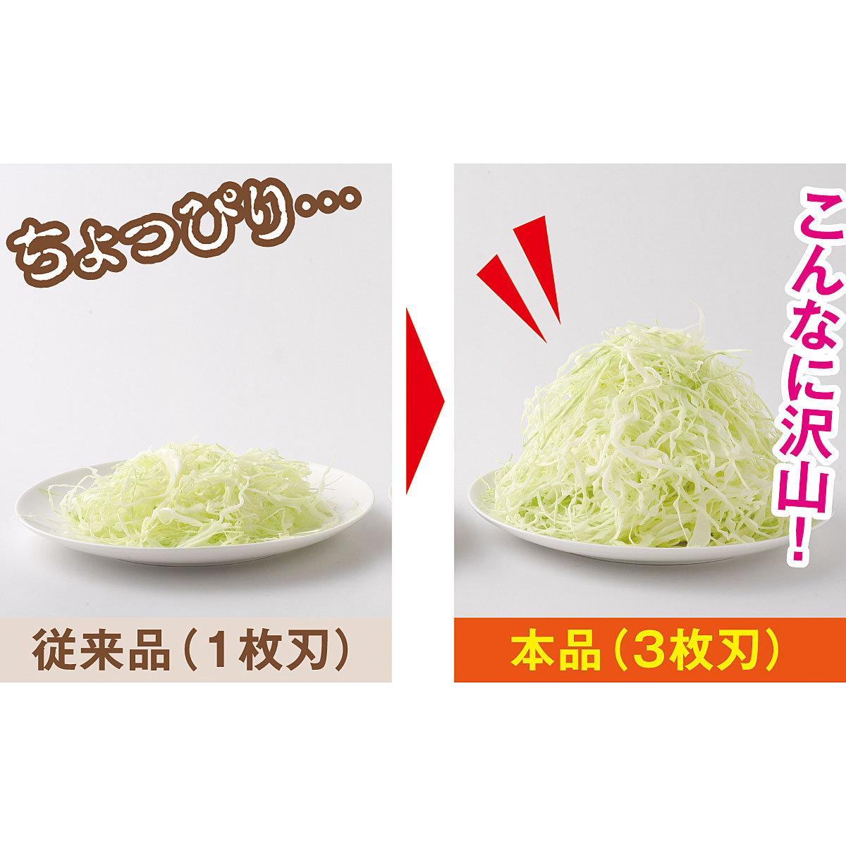 家庭用スライサーでは業界初の3枚刃を採用しているので、3倍の速さで調理ができます。手間のかかるキャベツの千切りが簡単に!