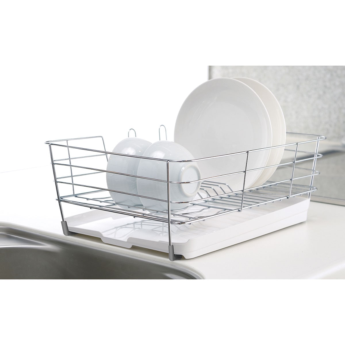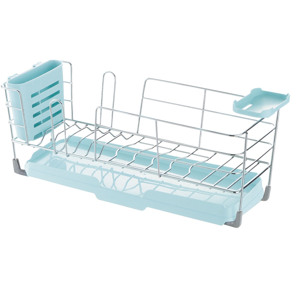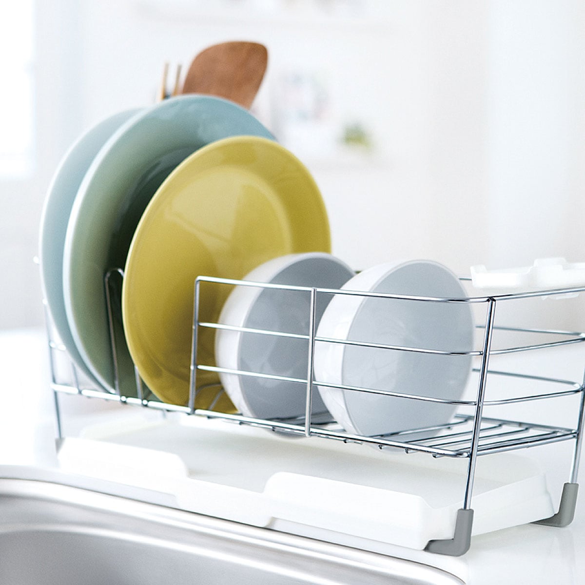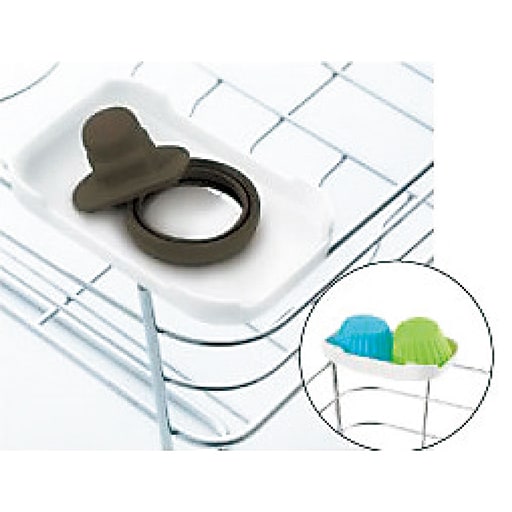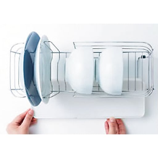 シンクのちょっとしたスペースに収まるスリムな仕様。ポケットやトレーは付け替え可能。食器が排水面にふれず、清潔に保てます。