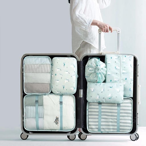 サイズや用途に合わせた7点セットの収納袋でスーツケースの中がスッキリ!