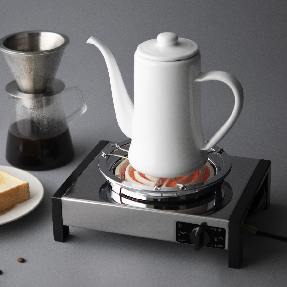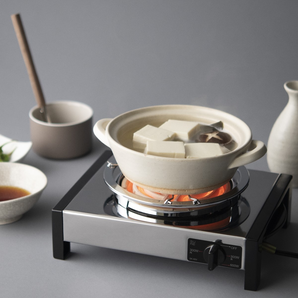 ヒーターの加熱が早く、すぐに調理を始められます。一定の温度での温めも可能。餅の網焼きなどのとろ火調理・保温におすすめ!温度が安定しやすい電熱ヒーターだから、とろ火調理や料理の保温などに最適。湯豆腐や熱燗など、一定の温度で温めながら、ゆっくりと食事を楽しめます。