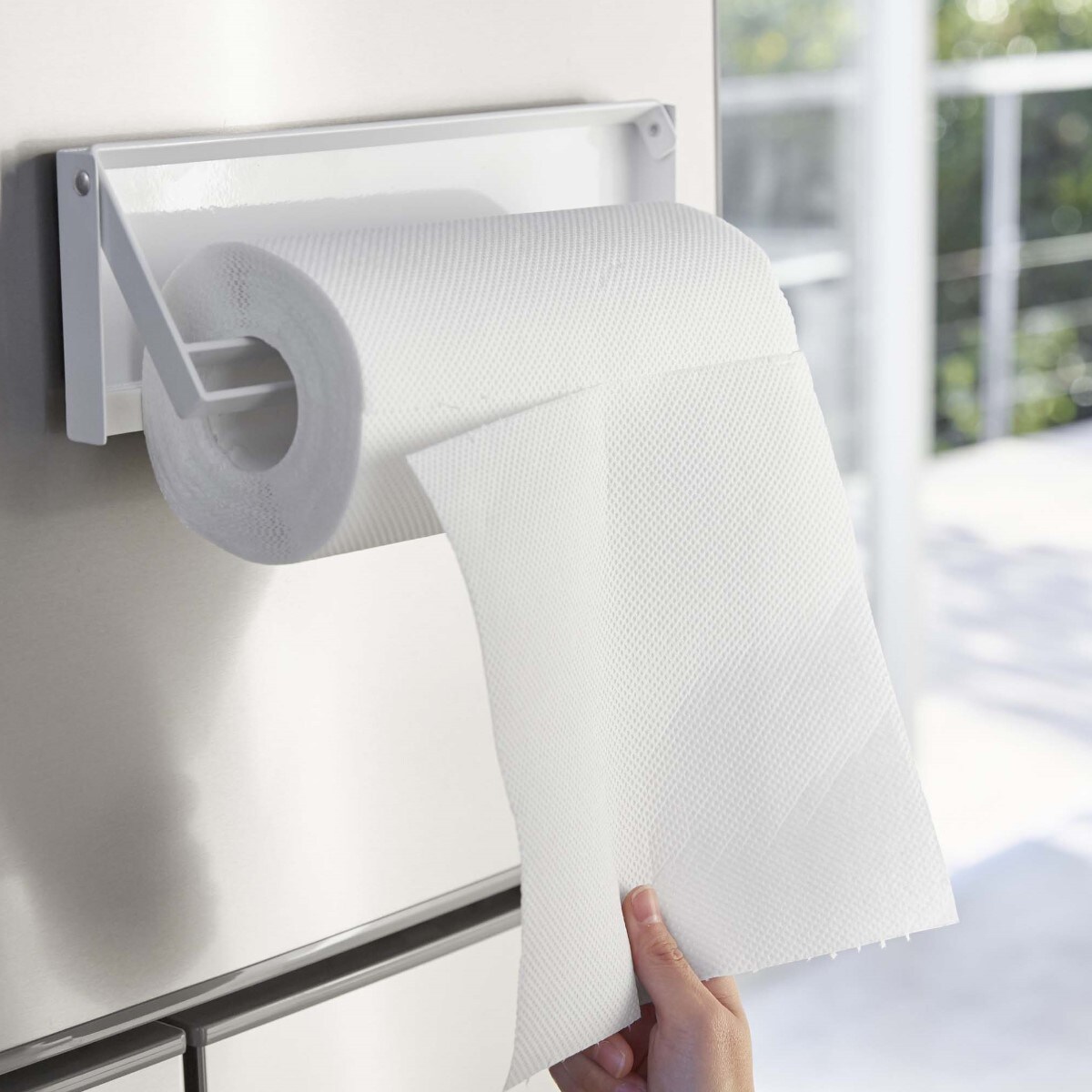 冷蔵庫に強力マグネットで簡単取り付け!片手でカットできるマグネットキッチンペーパーホルダー。
