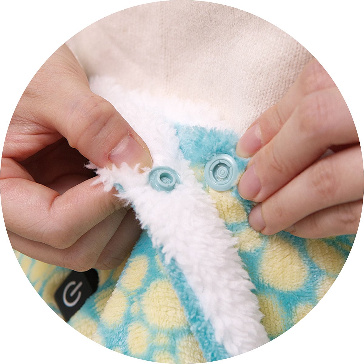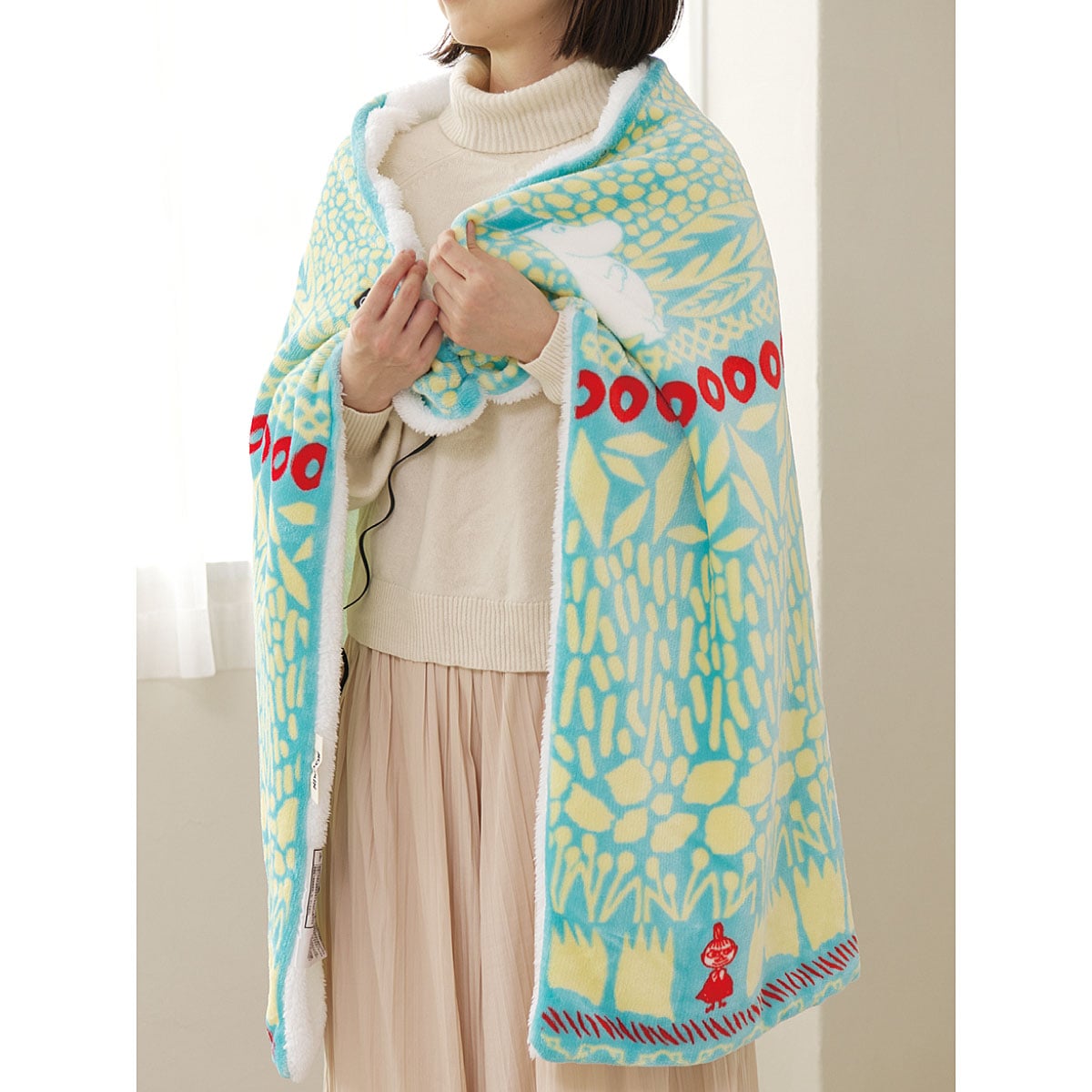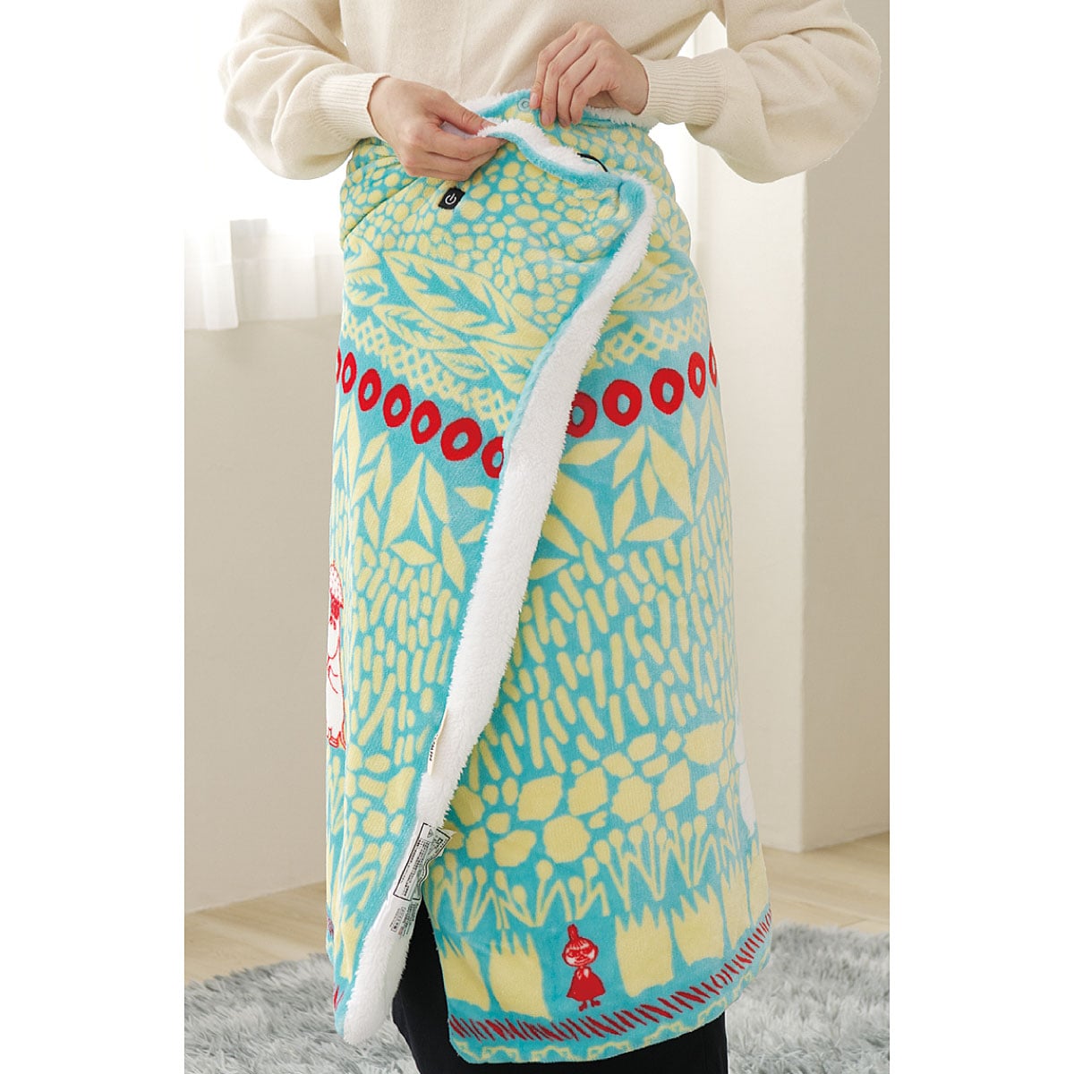 人気のムーミン電気ブランケット!肩掛けにも、腰にも巻けてボタン留めできる!